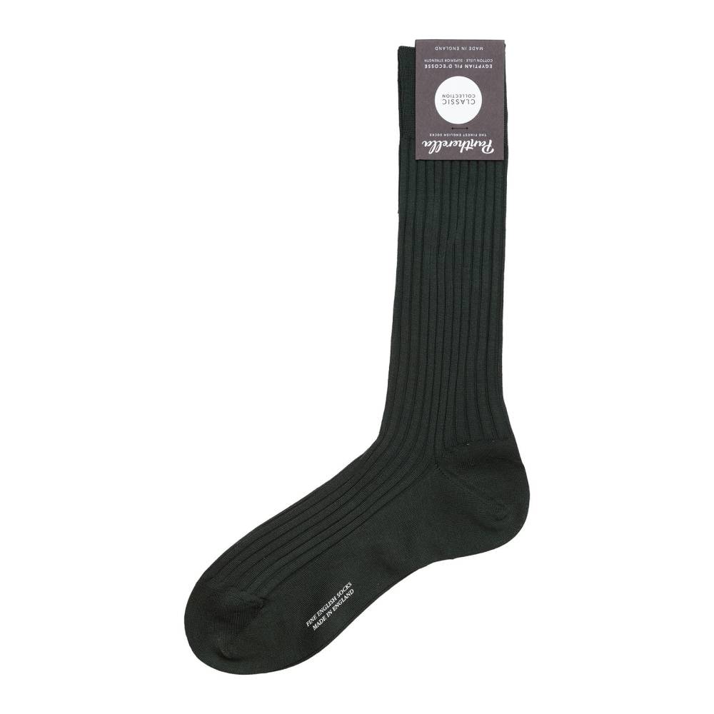 Тёмно-зелёные мужские носки Danvers — это носки премиум-класса английской компании Pantherella из коллекции Classic. Пара выполнена с соблюдением высочайших стандартов качества, которых фабрика придерживается начиная с даты своего основания в 1937 году. Создание данной пары начинается со сбора и обработки длинноволокнистого хлопка Giza 88 в дельте реки Нил (Египет). Затем уже в Италии из него производят фильдекосовую пряжу. В процессе мерсеризации с пряжи удаляются все свободные волокна, благодаря чему она становится гладкой и блестящей. В Англии на фабрике Pantherella на станках с 200 иглами и применением ручного труда пряжа превращается в готовое изделие. Особенностью носков можно отметить гладкий и практически неощущаемый шов на носке.