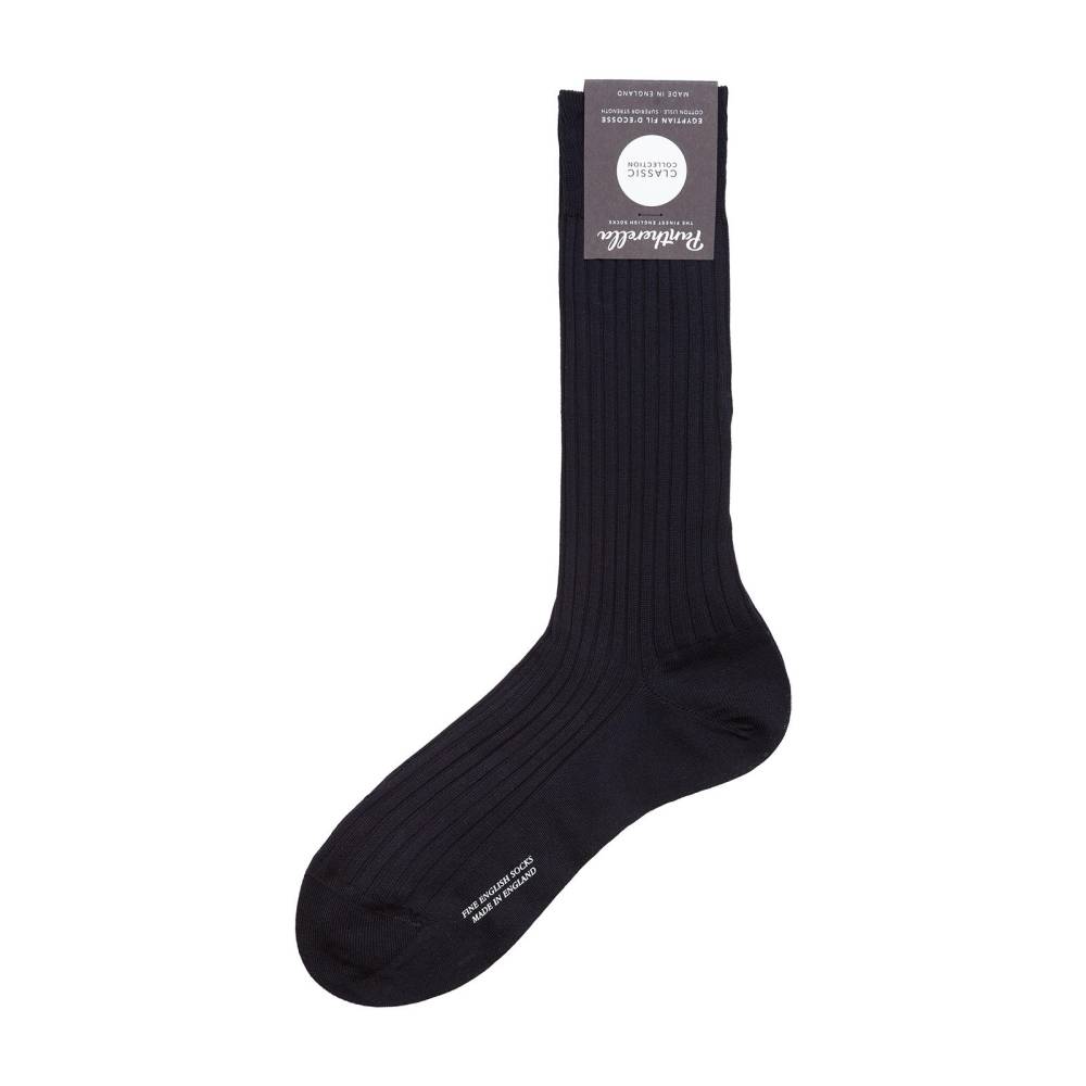 Тёмно-синие мужские носки Danvers — это носки премиум-класса английской компании Pantherella из коллекции Classic. Пара выполнена с соблюдением высочайших стандартов качества, которых фабрика придерживается начиная с даты своего основания в 1937 году. Создание данной пары начинается со сбора и обработки длинноволокнистого хлопка Giza 88 в дельте реки Нил (Египет). Затем уже в Италии из него производят фильдекосовую пряжу. В процессе мерсеризации с пряжи удаляются все свободные волокна, благодаря чему она становится гладкой и блестящей. В Англии на фабрике Pantherella на станках с 200 иглами и применением ручного труда пряжа превращается в готовое изделие. Особенностью носков можно отметить гладкий и практически неощущаемый шов на носке.