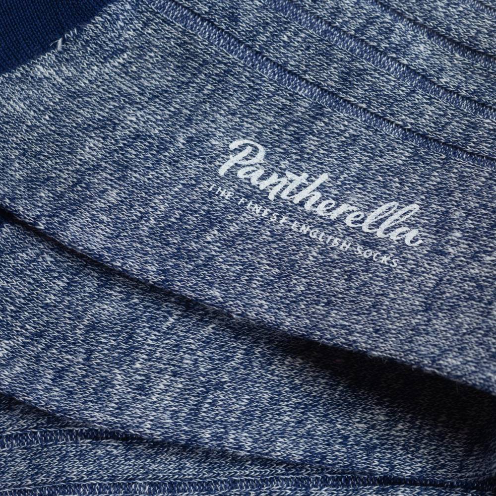 Лёгкие летние носки Hamada английского бренда Pantherella из базовой линейки Classic collection. Модель была названа в честь пустынной местности под жарким палящим солнцем, где природа диктует свои условия, заставляя использовать определенные виды одежды и ткани. Носки Hamada выполнены из высококачественной смесовой пряжи, в состав которой входят лён и хлопок. Благодаря этому стопа чувствует себя комфортно в классической обуви в жаркую погоду. Модель имеет приятный меланжевый синий цвет с контрастными тёмно-синими частями на пятке и мыске. Пара выполнена с соблюдением высочайших стандартов качества, которых фабрика придерживается начиная с даты своего основания в 1937 году. Особенностью носков является гладкий и практически неощущаемый шов на мыске, что является фирменной чертой бренда.