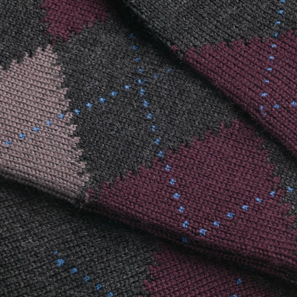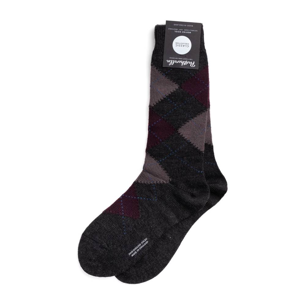 Модель имеет узнаваемый узор «аргайл» в тёмно-серых, бордовых, коричневых и голубых тонах. Данные носки можно сочетать с повседневной обувью (например, моделями из замши либо зернистой кожи, в том числе с брогами), джинсами и брюками из плотных и фактурных материалов.