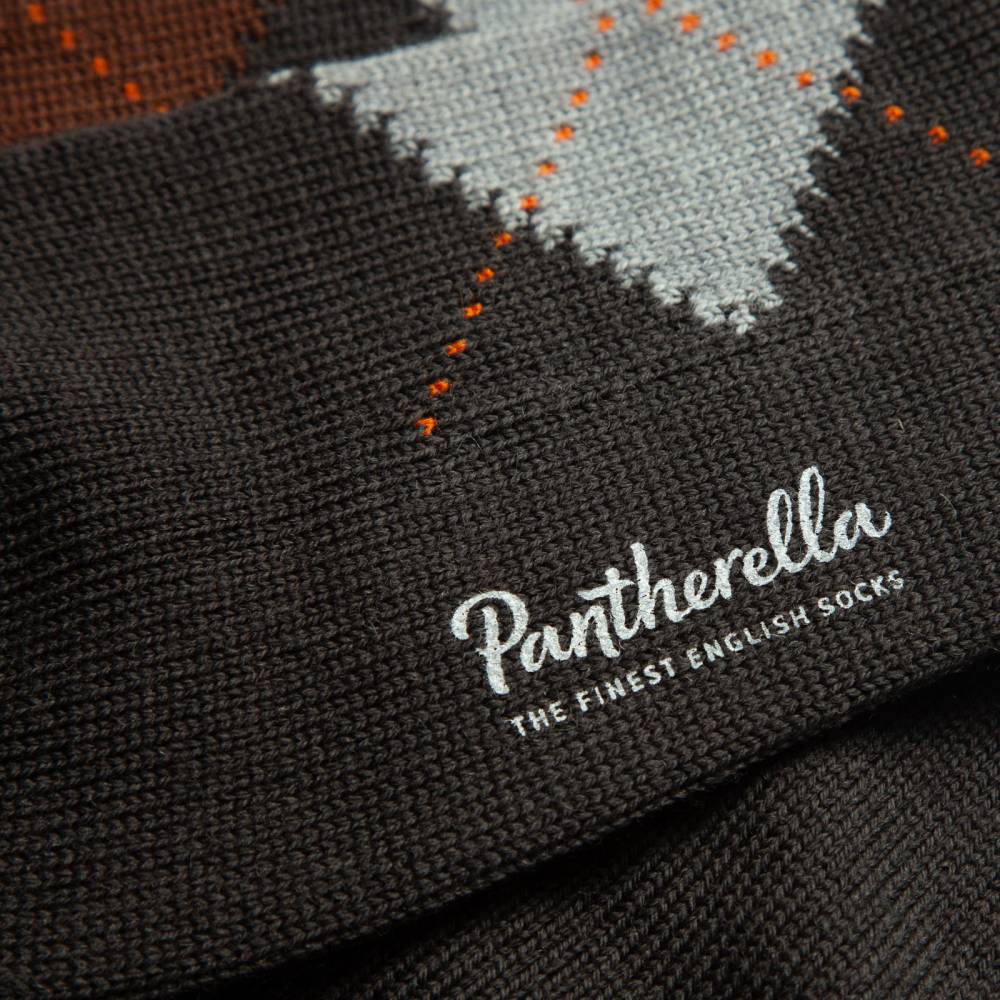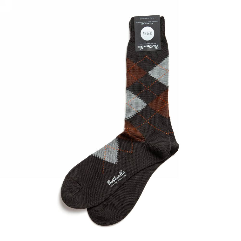 Модель имеет узнаваемый узор «аргайл» в коричневых и серых тонах. Данные носки можно сочетать с повседневной обувью (например, моделями из замши либо зернистой кожи, в том числе с брогами), джинсами и брюками из плотных и фактурных материалов.
