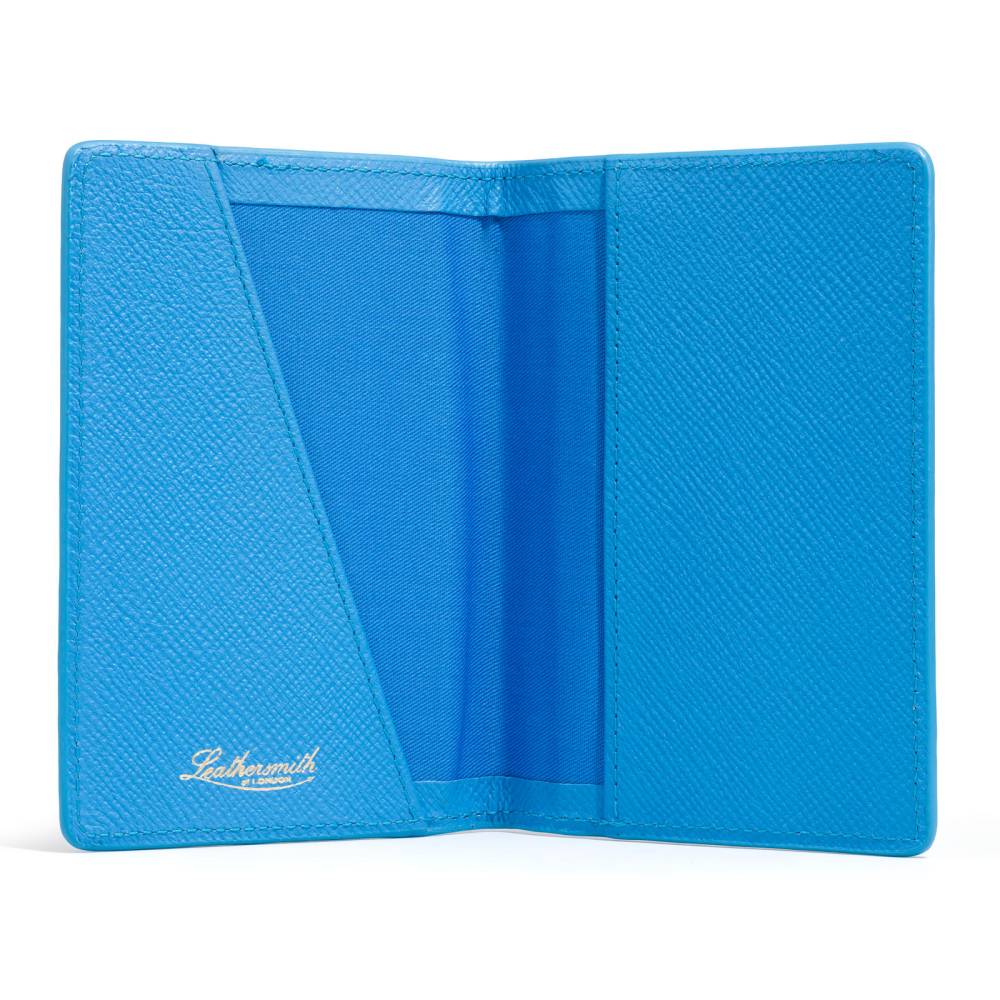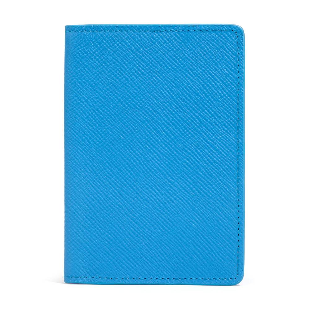 Элегантная обложка для паспорта от английской мануфактуры Leathersmith of London. Изготовлена из высококачественной зернистой телячьей кожи Rutland. Выполнена в фирменном для бренда лазурно-голубом цвете Capri. Имеет два удобных внутренних кармана и хлопковая подкладку.
