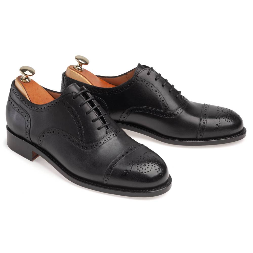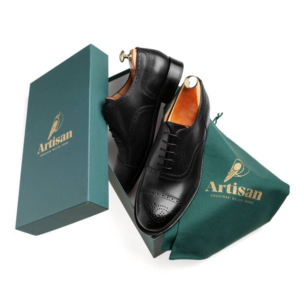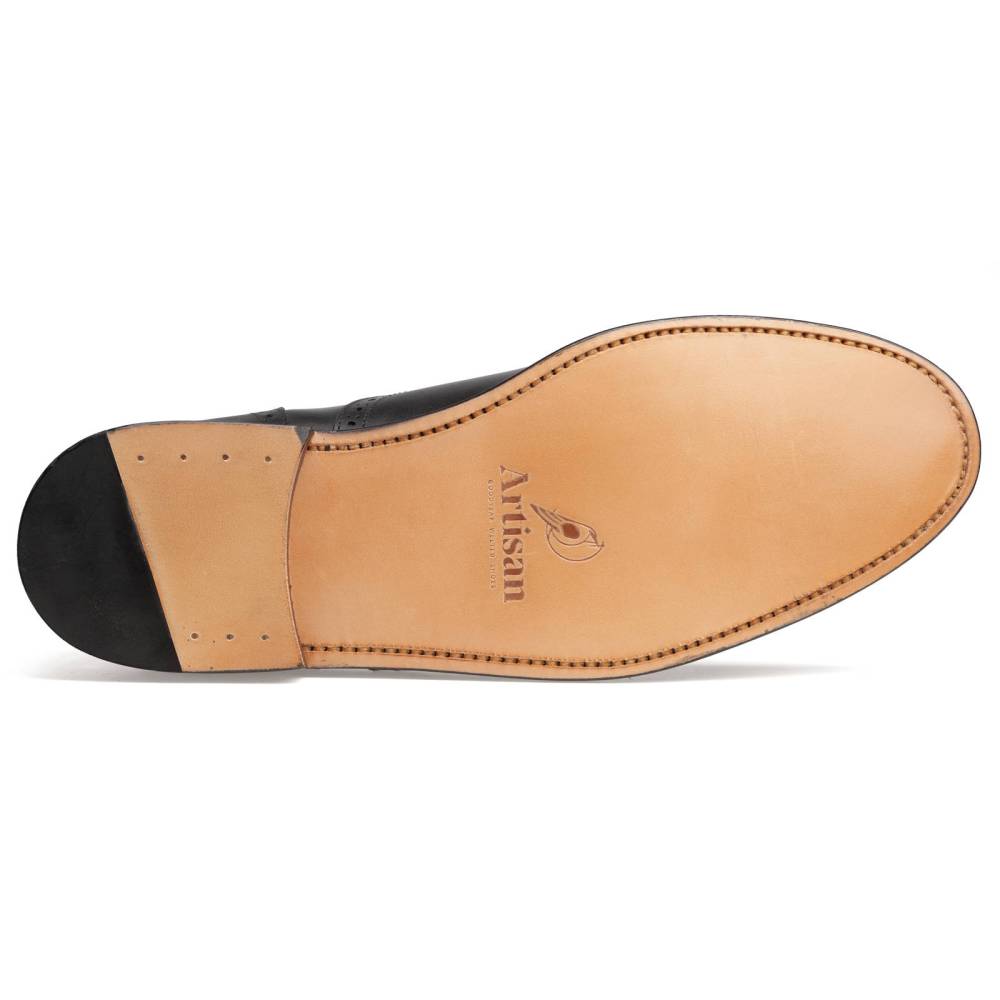 Универсальные чёрные броги испанской марки Artisan на кожаной подошве. Верх модели изготовлен из плотной телячьей кожи. Подкладка - из тонкой и мягкой кожи растительного дубления. Конструкция Goodyear Welted. Модель будет отлично сочетаться как с тёмно-синим или серым костюмом, так и с неформальным гардеробом: вязанные свитера и кардиганы, льняные или хлопковые брюки-чинос, джинсы прямого или полуприлегающего кроя.