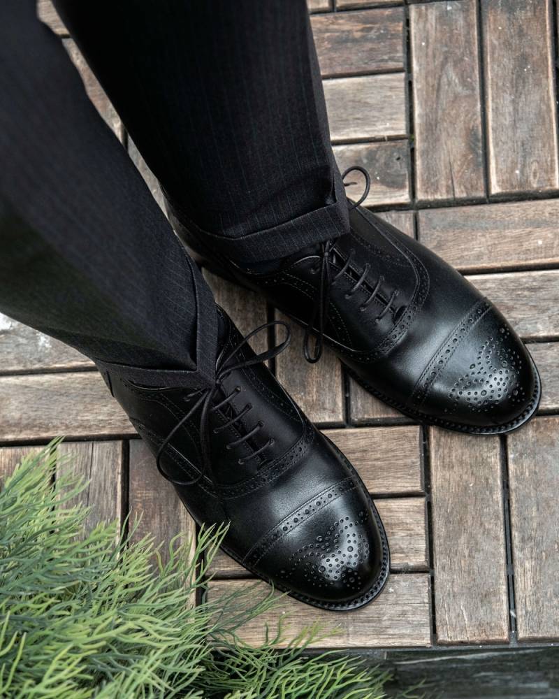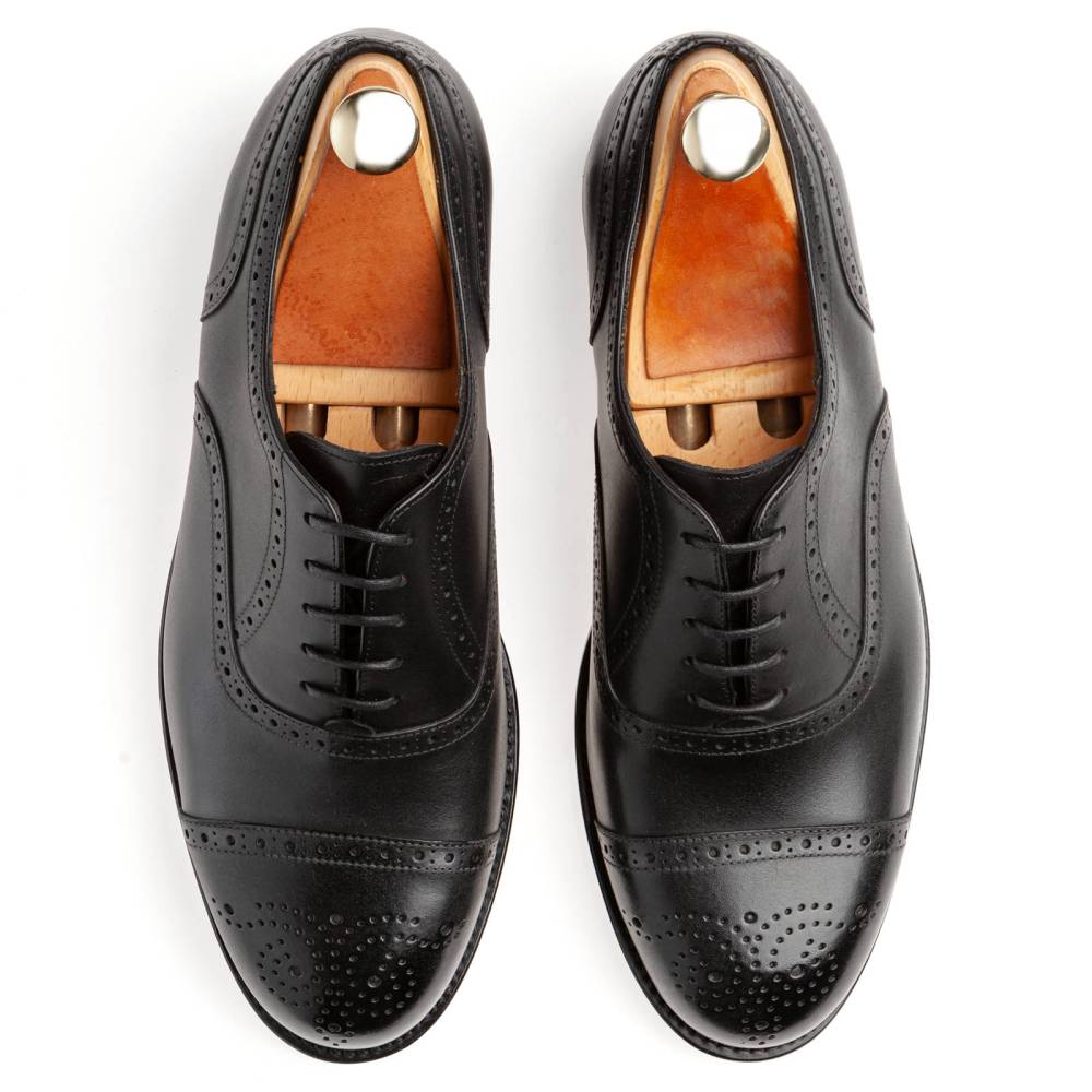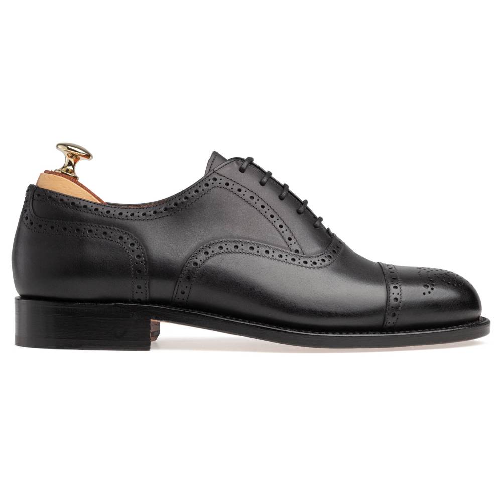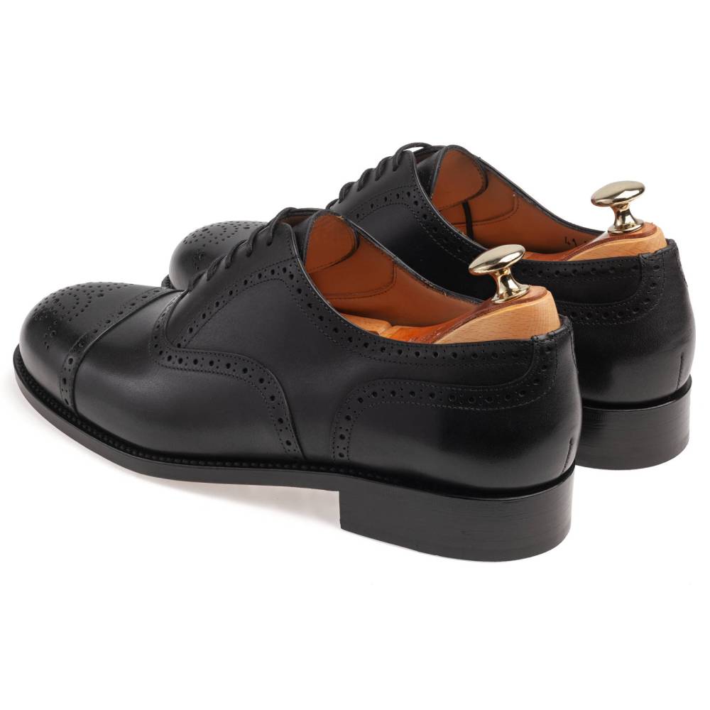 Универсальные чёрные броги испанской марки Artisan на кожаной подошве. Верх модели изготовлен из плотной телячьей кожи. Подкладка - из тонкой и мягкой кожи растительного дубления. Конструкция Goodyear Welted. Модель будет отлично сочетаться как с тёмно-синим или серым костюмом, так и с неформальным гардеробом: вязанные свитера и кардиганы, льняные или хлопковые брюки-чинос, джинсы прямого или полуприлегающего кроя.