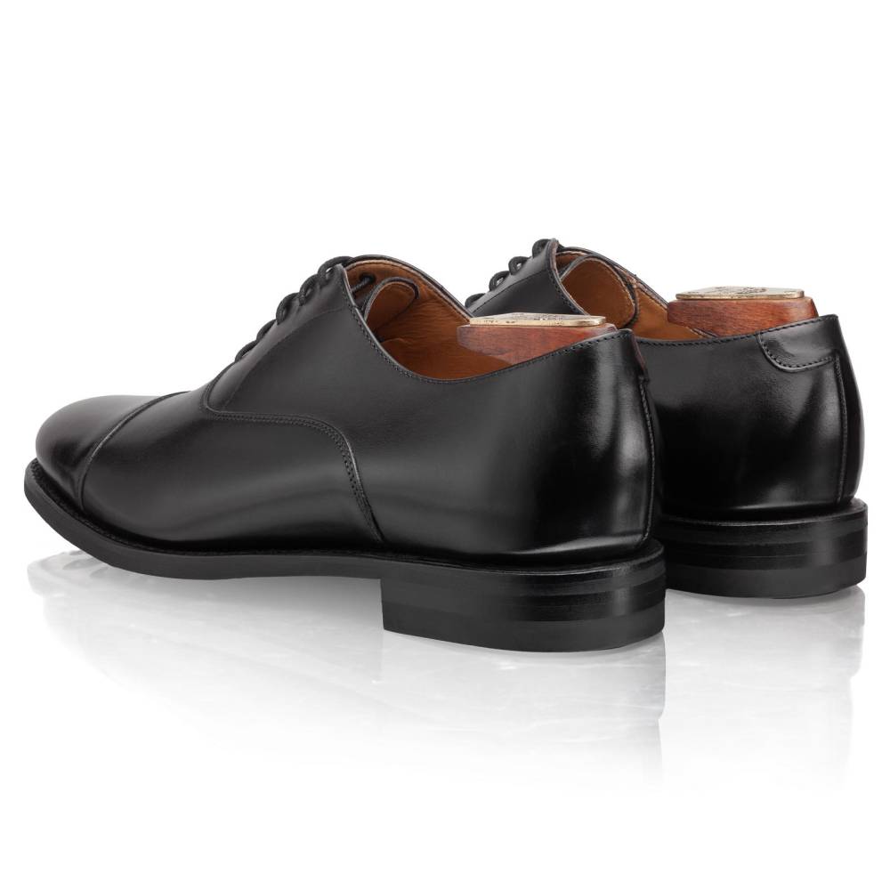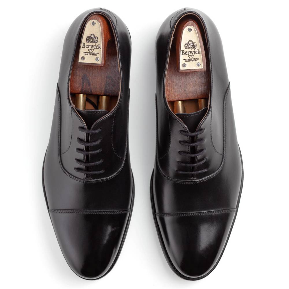 Традиционные оксфорды c отрезным мысом из коллекции испанского бренда Berwick. Верх выполнен из плотной телячьей кожи чёрного цвета. Практичная резиновая подошва Dainite. Конструкция Goodyear Welted.