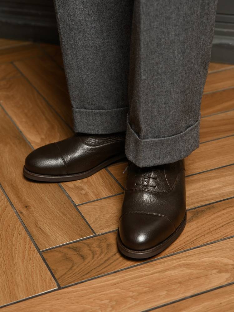 Классические тёмно-коричневые оксфорды с отрезным мыском (Cap Toe) от испанской фабрики Berwick.