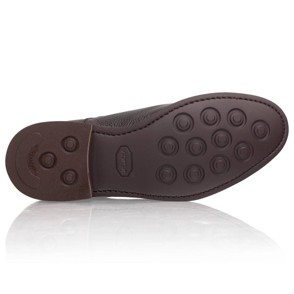 Верх сшит из мягкой, приятной на ощупь оленьей кожи с зернистой текстурой. Оленья кожа принимает форму стопы, обеспечивая индивидуальную посадку и исключительный комфорт в течение всего дня.Подкладка выполнена из натуральной телячьей кожи растительного дубления. На нижнюю часть подошвы установлена облегченная резина Vibram с неглубоким протектором. Такое сочетание материалов позволяет носить обувь даже в дождливую погоду, не жертвуя при этом удобством и классическим видом. Надежная конструкция Goodyear Welted.