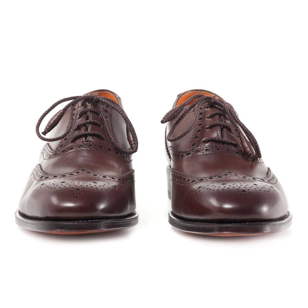 Классические женские туфли броги Carmina в традиционном английском стиле на кожаной подошве. Верхняя часть выполнена из гладкой телячьей кожи коричневого цвета, украшенной перфорированным узором.