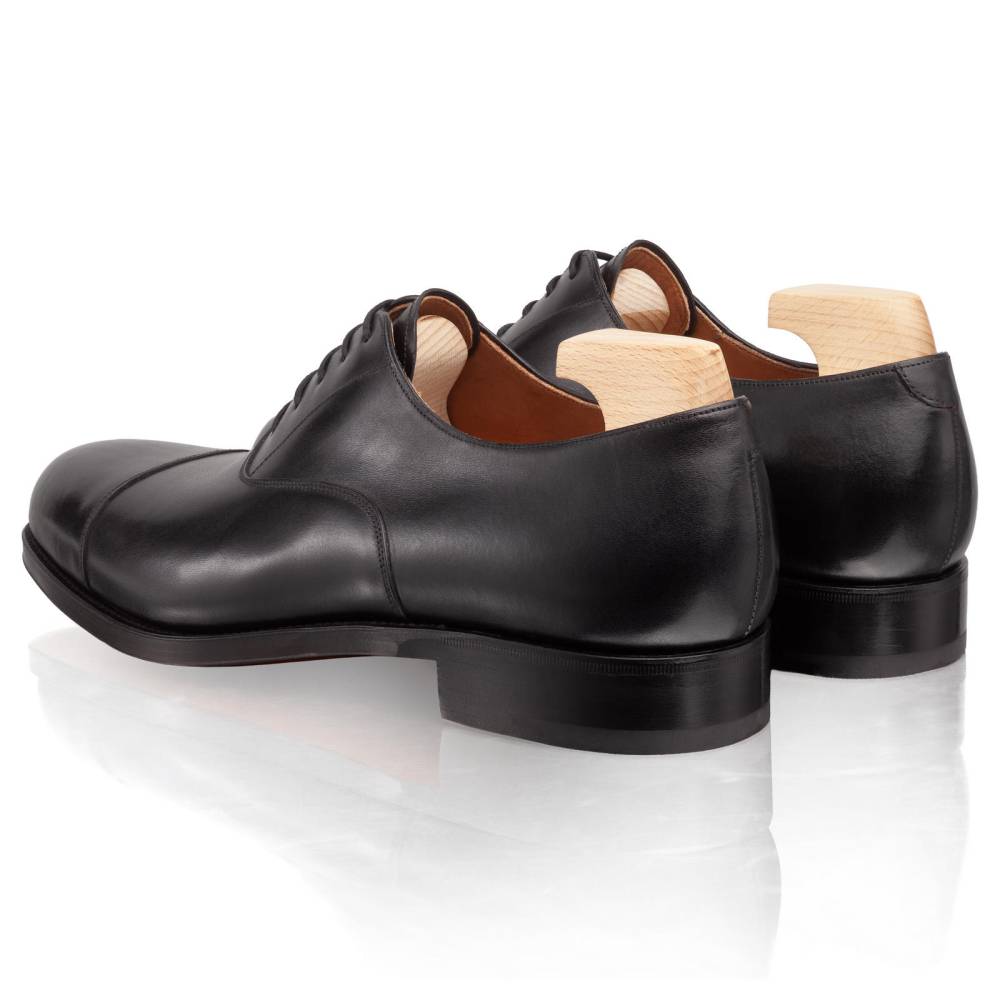 Формальные классические оксфорды с отрезным мыском (Cap Toe) от испанского бренда Carmina. Эта модель является незаменимой частью делового гардероба и идеально подходит для официальных мероприятий. Выполнены из плотной телячьей кожи (Box Calf) глубокого чёрного цвета, хромового дубления. Внутренняя отделка из тончайшей кожи растительного дубления обеспечивает исключительный комфорт и воздухопроницаемость в течение всего дня. Конструкция Goodyear Welted.