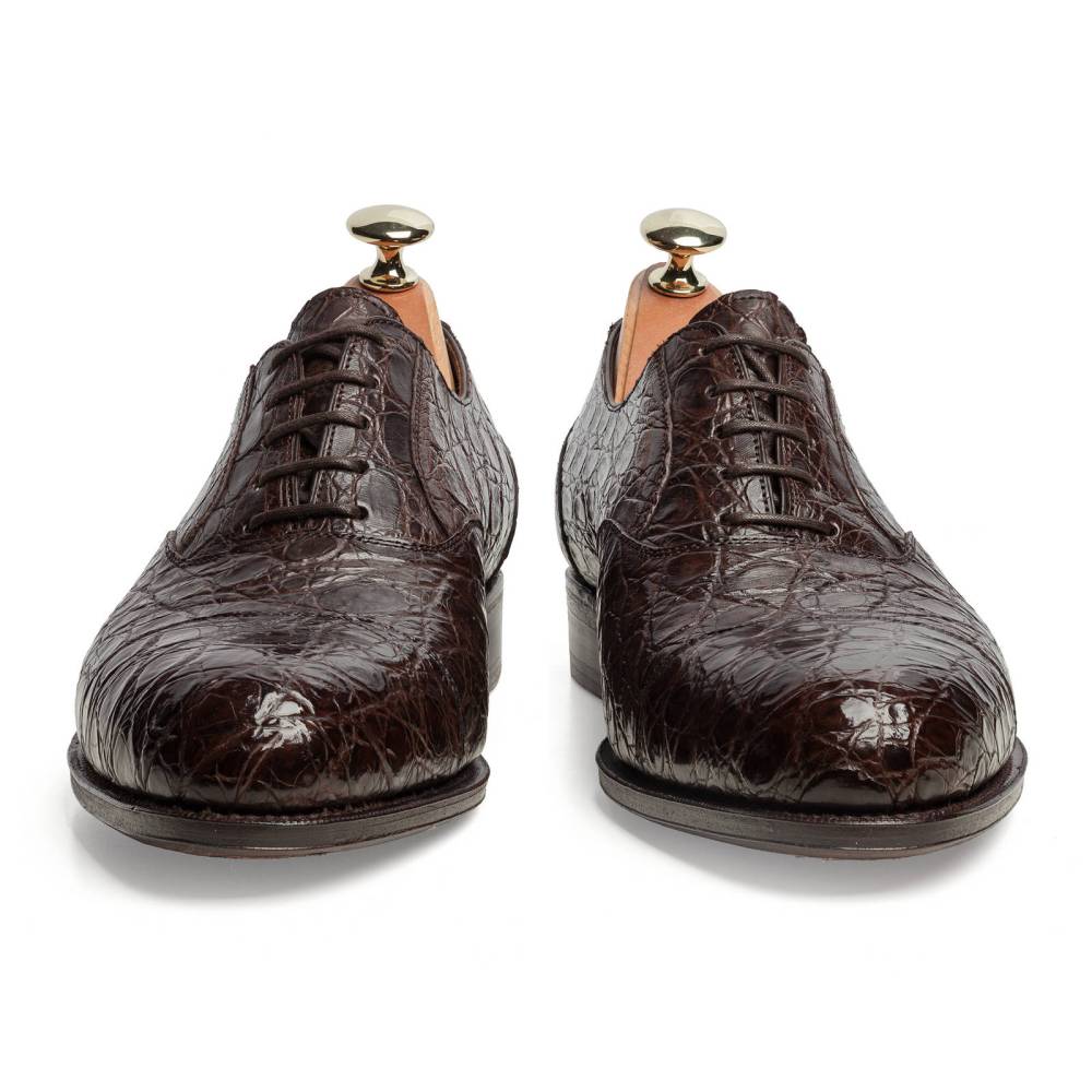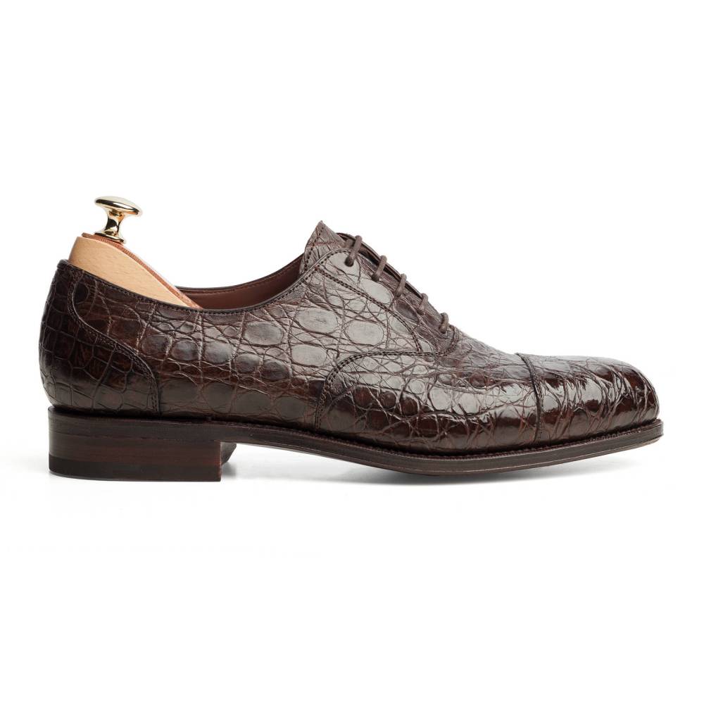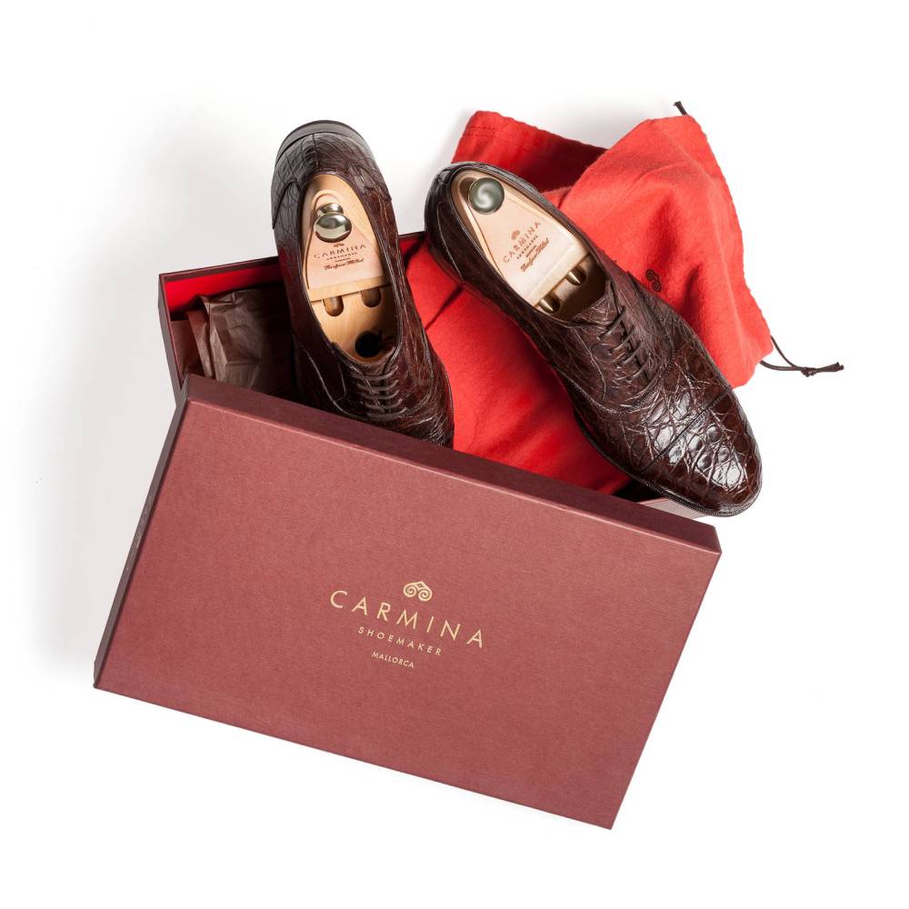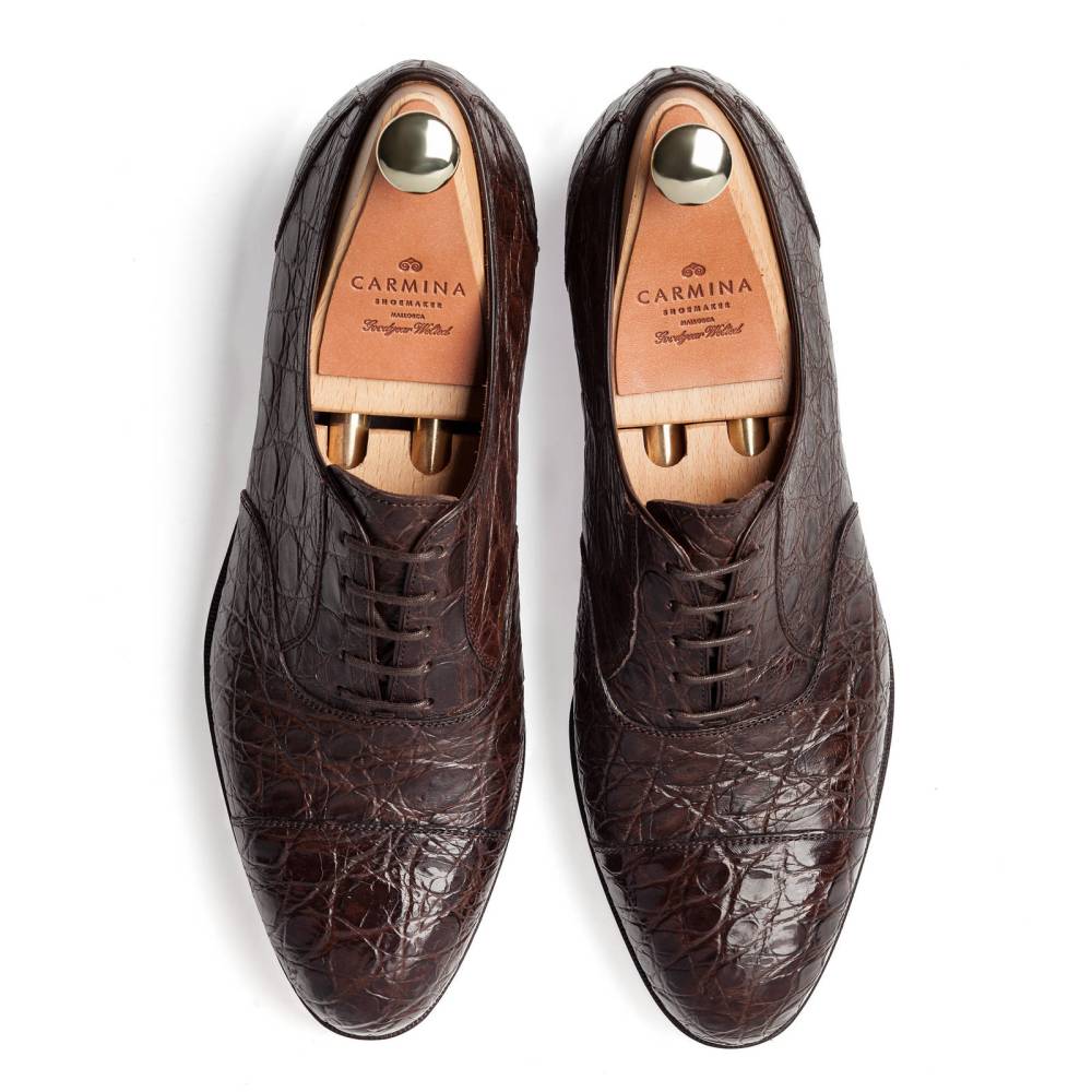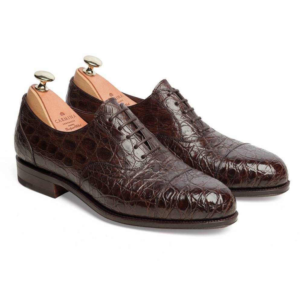 Классические мужские оксфорды испанского бренда Carmina с отрезным мысом. Верх выполнен из кожи крокодила наивысшего качества. Для создания этой пары кожа была вручную окрашена и обработана лучшими мастерами фабрики Carmina. На модель установлена высококачественная кожаная подошва от знаменитой немецкой дубильни Joh. Rendenbach. Конструкция Goodyear Welted.