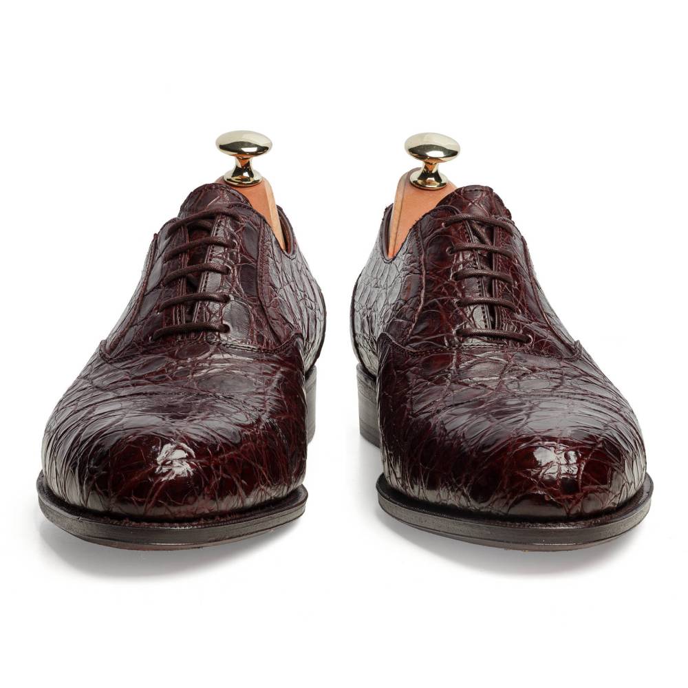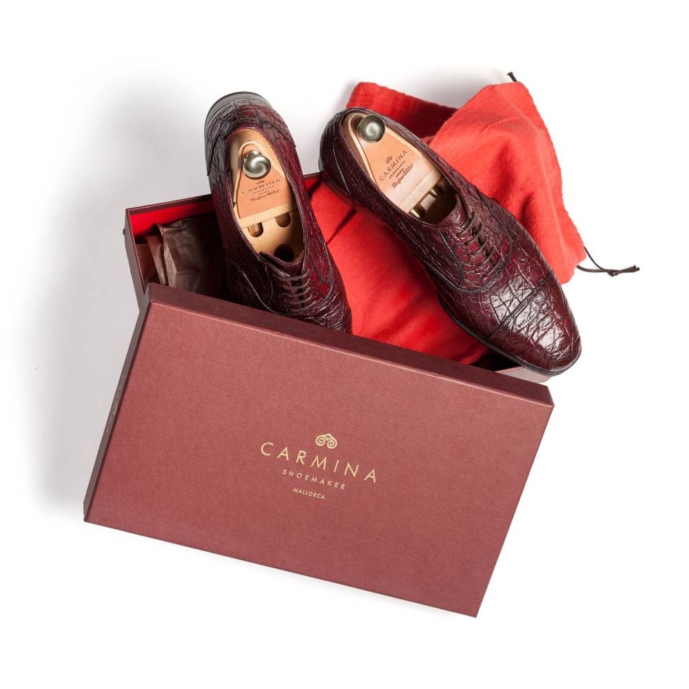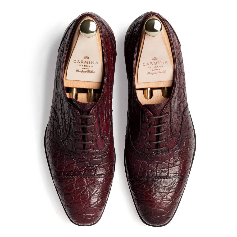 Классические мужские оксфорды испанского бренда Carmina с отрезным мысом. Верх выполнен из кожи крокодила наивысшего качества. Для создания этой пары кожа была вручную окрашена и обработана лучшими мастерами фабрики Carmina. На модель установлена высококачественная кожаная подошва от знаменитой немецкой дубильни Joh. Rendenbach. Конструкция Goodyear Welted.