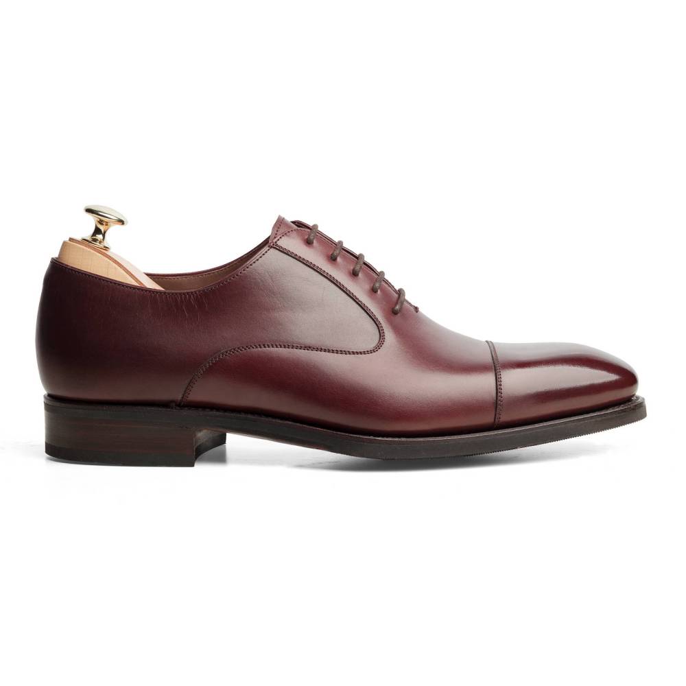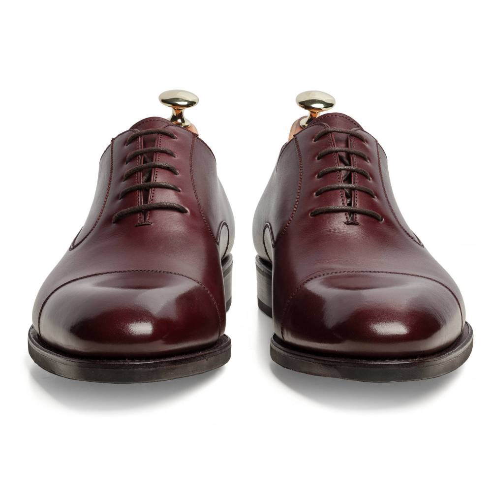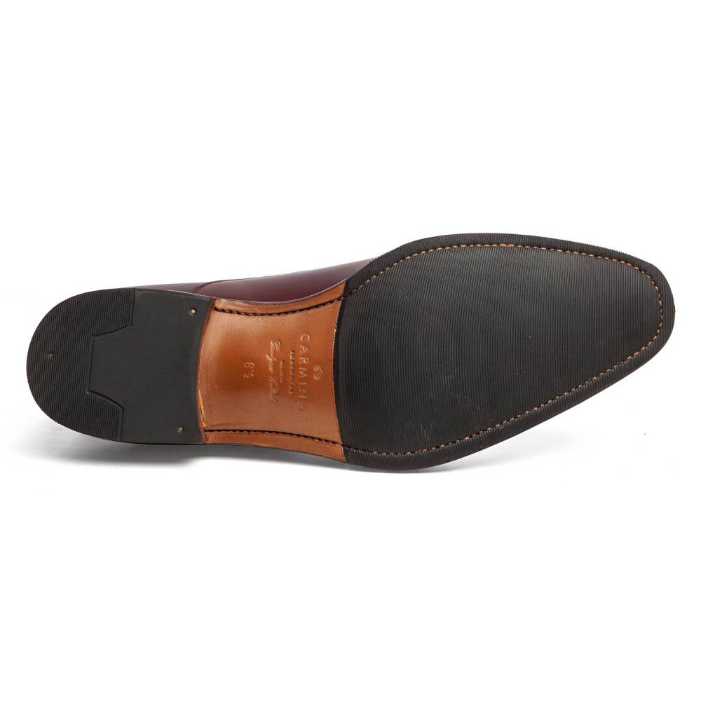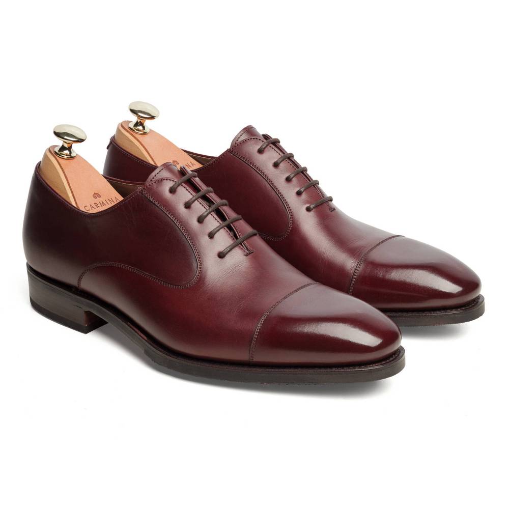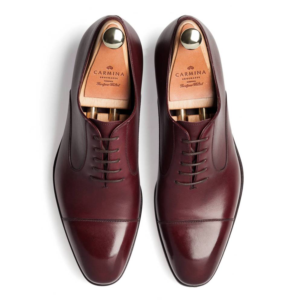 Классические мужские туфли оксфорды Carmina с отрезным мысом. Верх выполнен из высококачественной телячьей кожи бордового цвета. Модель имеет практичную комбинированную подошву из кожи и резины. Конструкция Goodyear Welted.