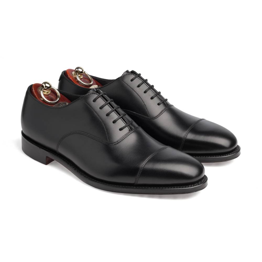 Традиционные чёрные оксфорды Loake Aldwych из коллекции Loake 1880 на кожаной подошве. Верхняя часть полностью выполнена из плотной телячьей кожи. Конструкция Goodyear Welted.