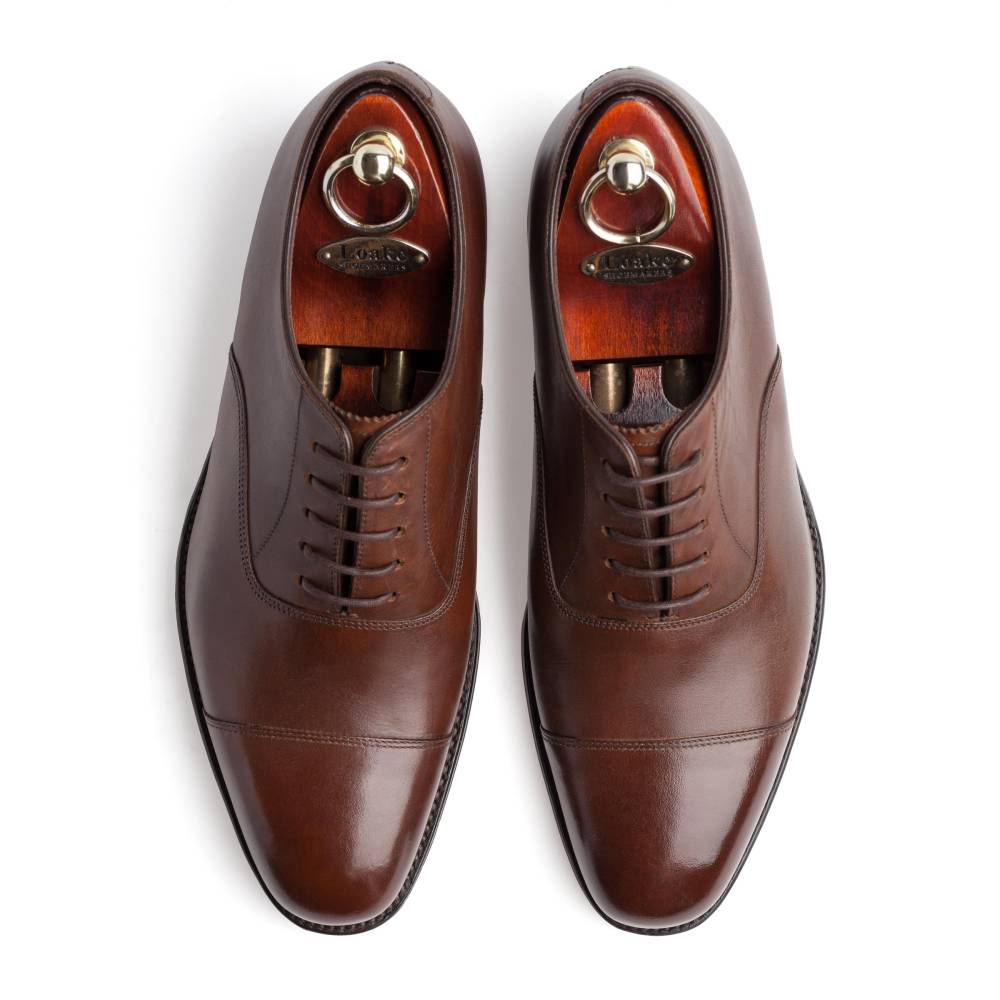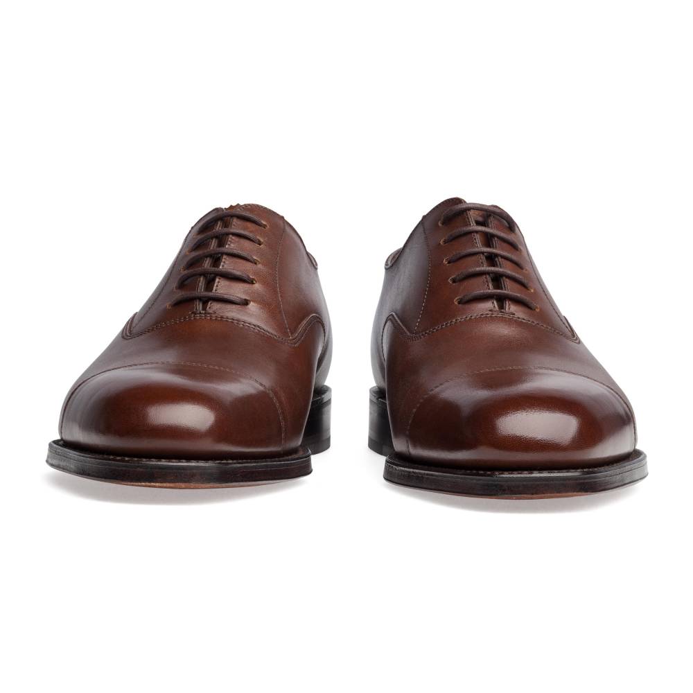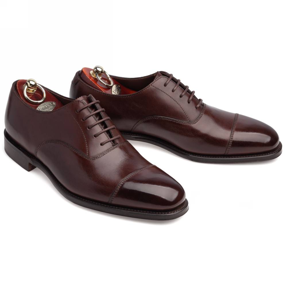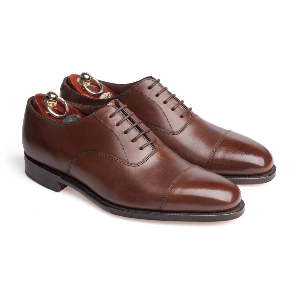 Традиционные оксфорды Loake Aldwych из коллекции Loake 1880 на кожаной подошве. Верхняя часть полностью выполнена из плотной телячьей кожи тёмно-коричневого цвета. Конструкция Goodyear.