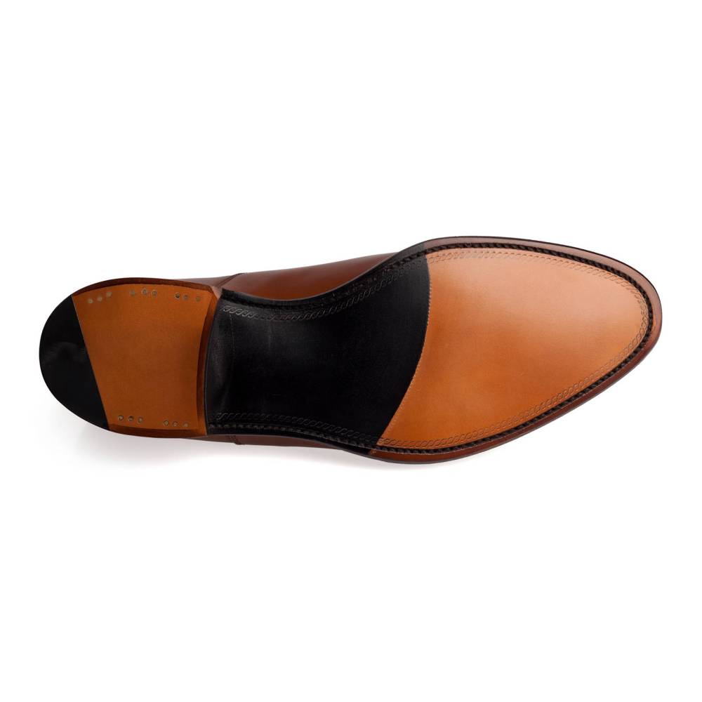 Классические мужские оксфорды Hanover из премиальной лимитированной коллекции Loake Export Grade. Верх выполнен из телячьей кожи самого высокого качества с применением технологии Burnished. Кожа для такой обуви проходит специальную обработку восками, благодаря чему создается эффект легкой патины на мысе. Внутренняя отделка из тонкой кожи горчичного оттенка. Кожаная подошва. Конструкция Goodyear Welted.