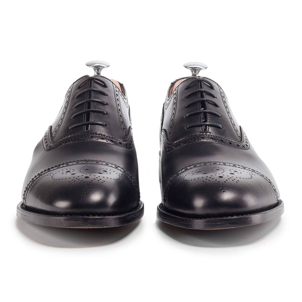 Оксфорды полуброги Loake Tweed из коллекции Loake Shoemakers выполнены из плотной телячьей кожи чёрного цвета. Внутренняя отделка из тонкой кожи. Кожаная подошва со вставкой из резины. Туфли украшены традиционным перфорированным узором и медальоном на мысе. Конструкция Goodyear.