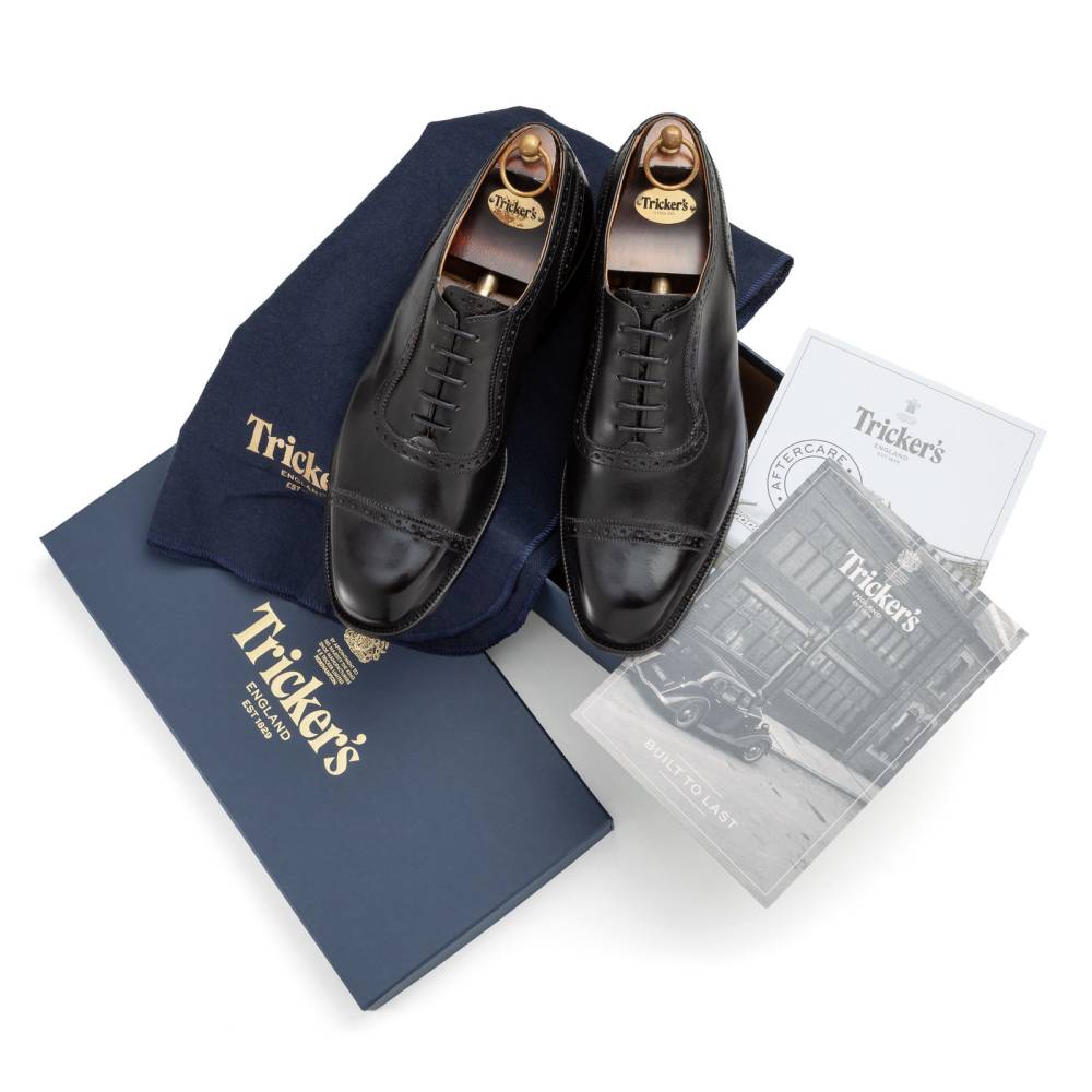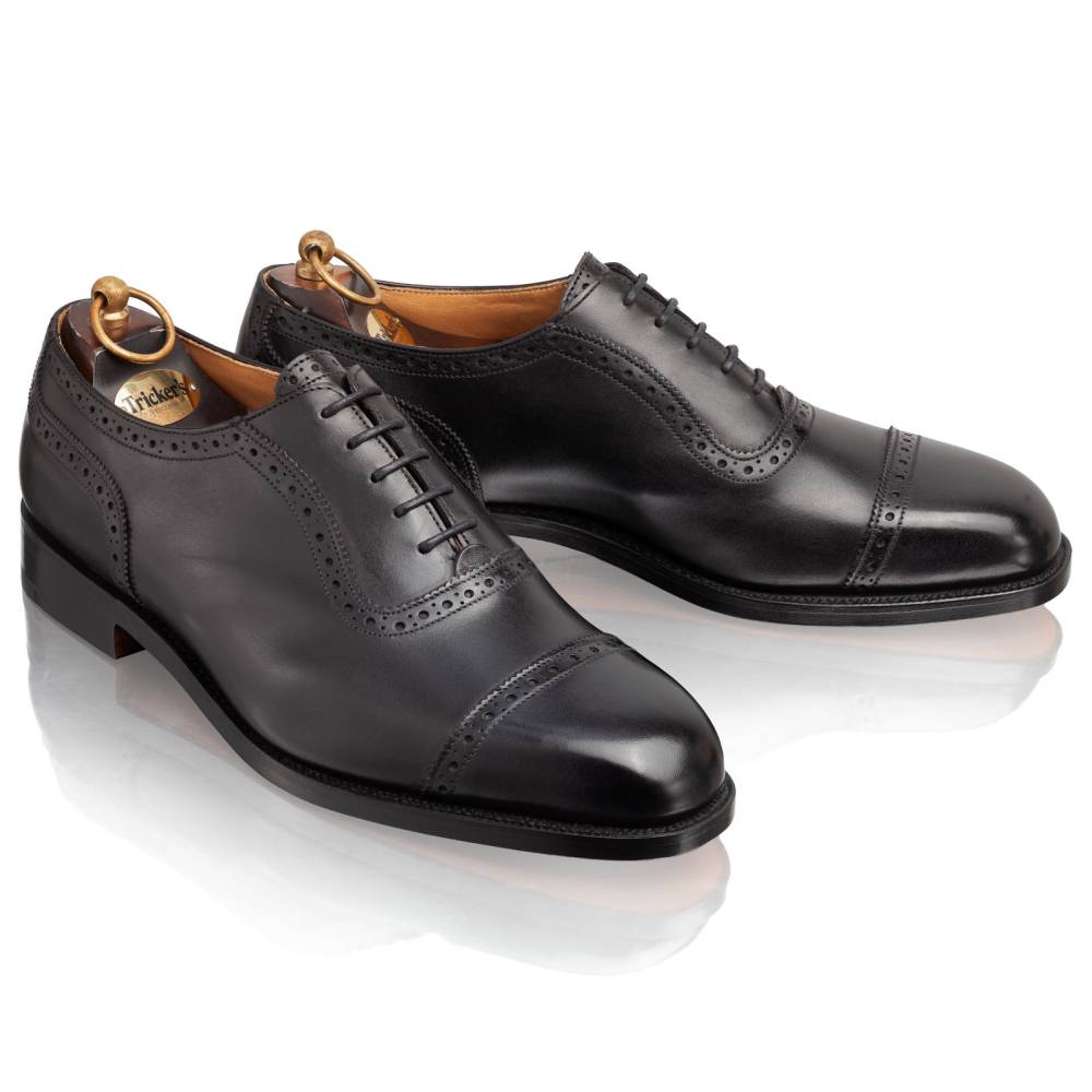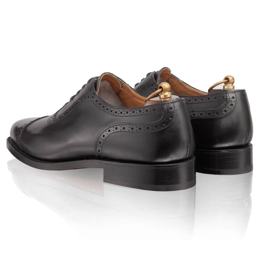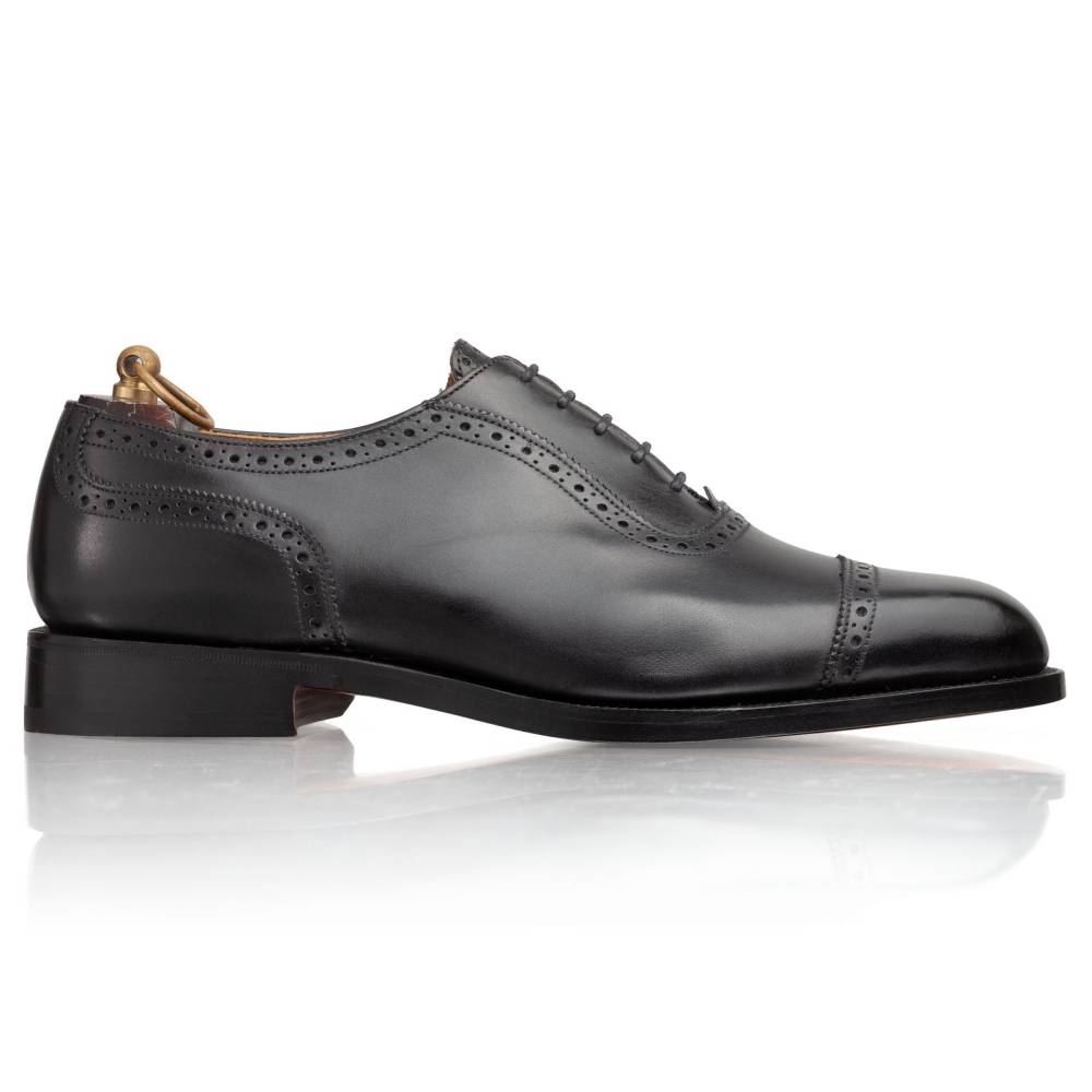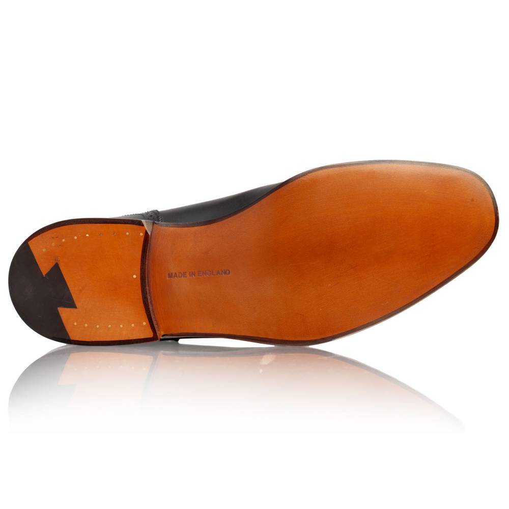 Классические оксфорды-аделаиды из линейки Town Collection. Модель отличает характерный U-образный шов вокруг шнуровки и дизайн punch cap (перфорация на мыске). Изготовлены вручную в Нортгемптоне из плотной черной телячьей кожи хромового дубления. Особая колодка с выраженными боковыми гранями создает четкий «рубленый» силуэт, подчеркивая формальный и статусный вид пары. Идеальный баланс между строгим дресс-кодом и изысканными деталями. Внутренняя отделка — кожа растительного дубления. Созданы по технологии Goodyear Welted, подошва из кожи.