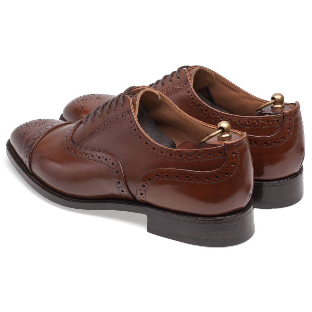 Оксфорды полуброги Kensington с отрезным мысом из коллекции Tricker's 1829 Collection. Модель выполнена из плотной телячьей кожи орехового оттенка с градиентным затемнением на мысе (beechnut burnished). Внутренняя отделка из кожи. Кожаная подошва. Конструкция Goodyear Welted.