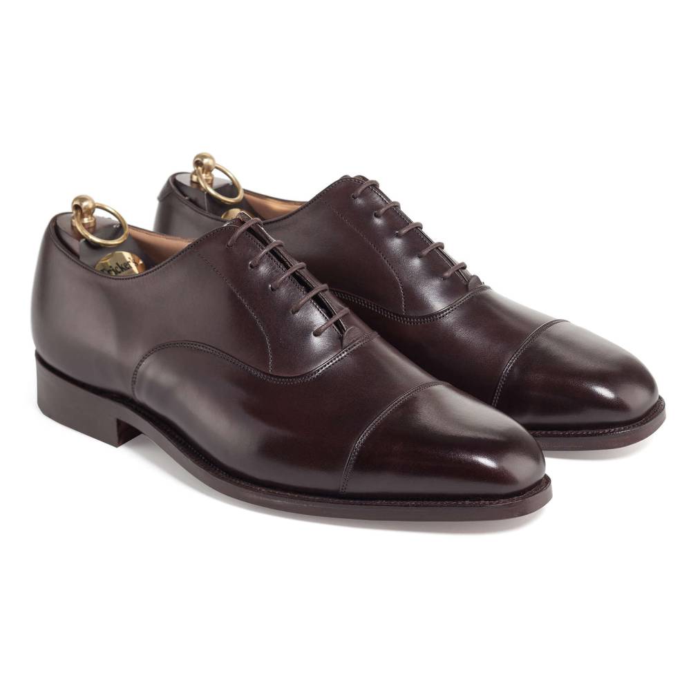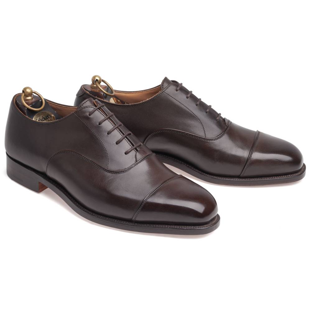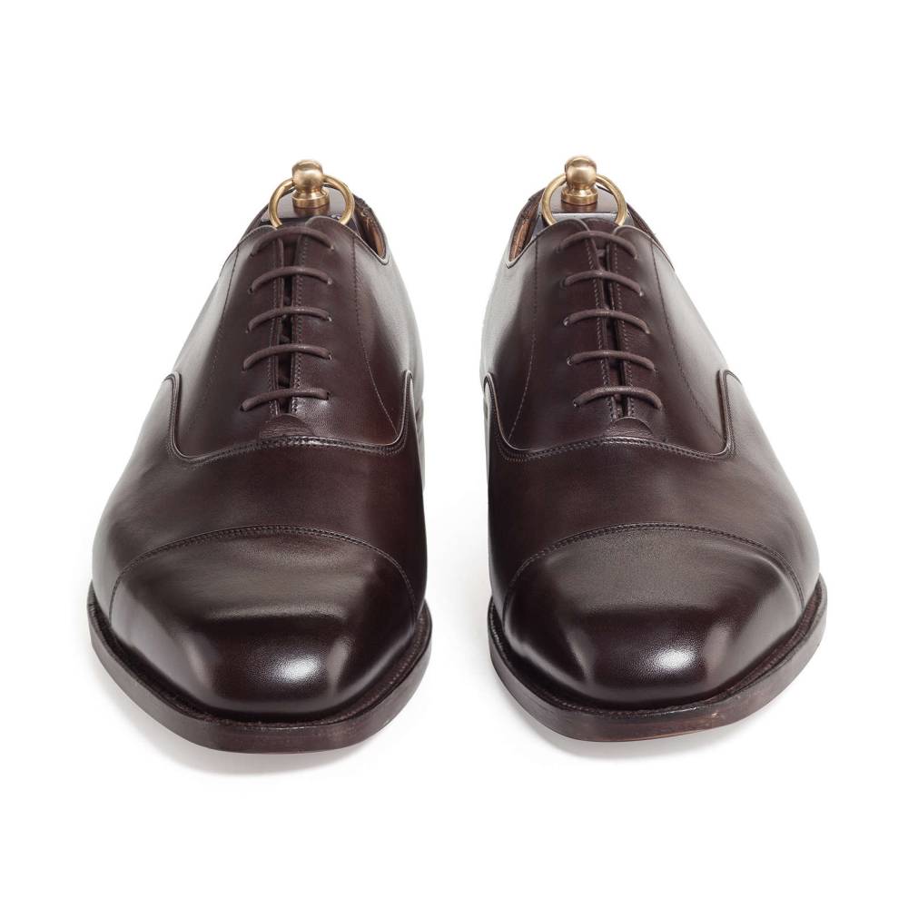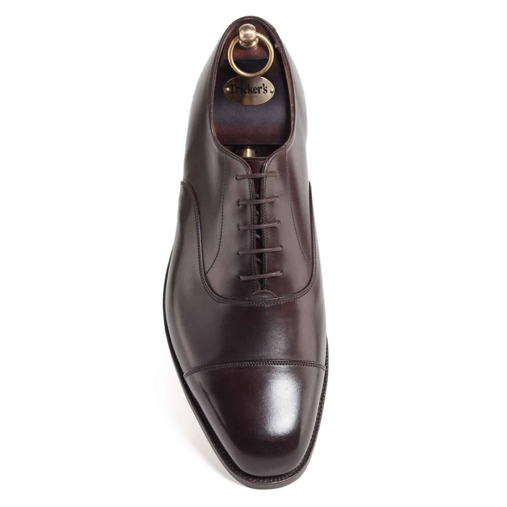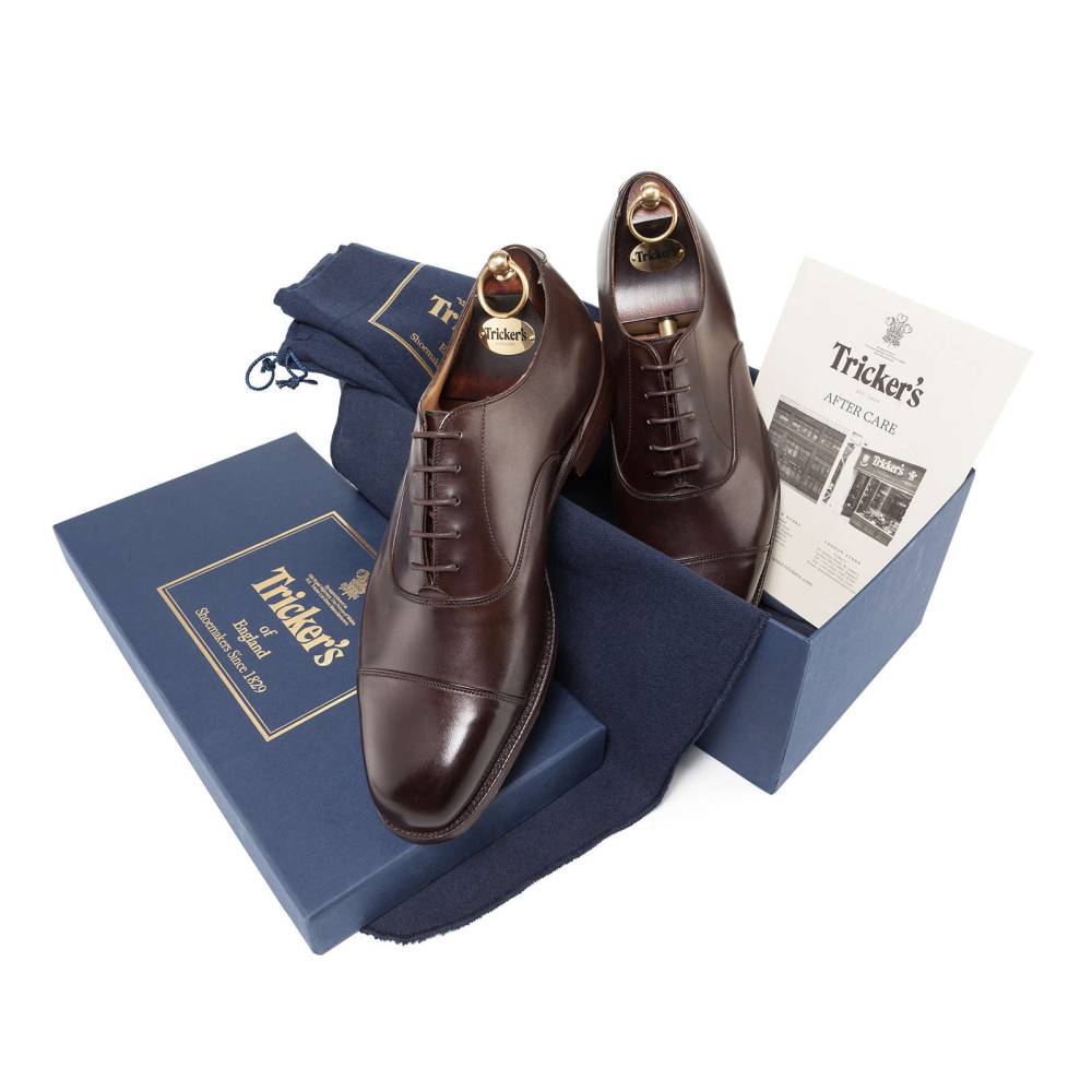Традиционные оксфорды с отрезным мысом Regent из коллекции Tricker's 1829 Collection на кожаной подошве. Верхняя часть полностью выполнена из плотной телячьей кожи тёмно-коричневого цвета. Конструкция Goodyear Welted.