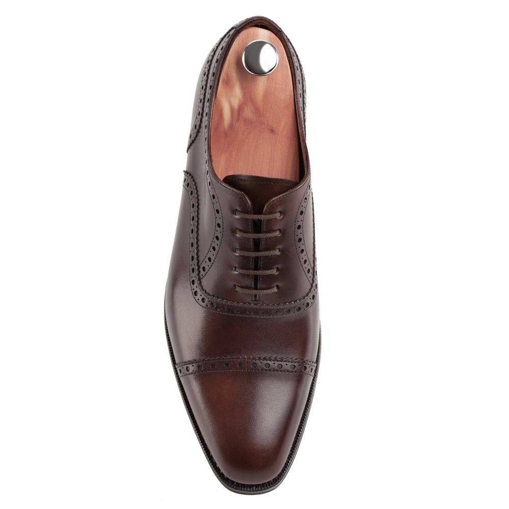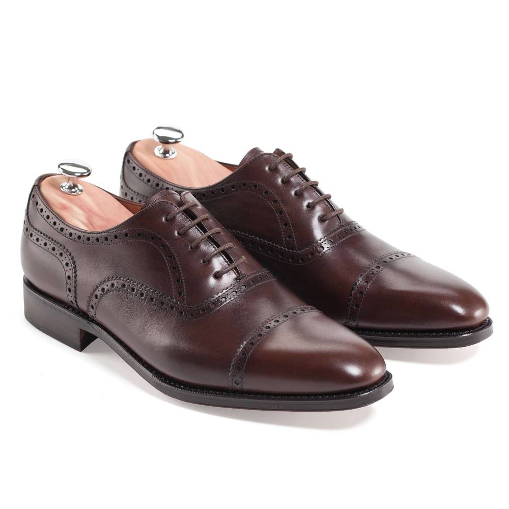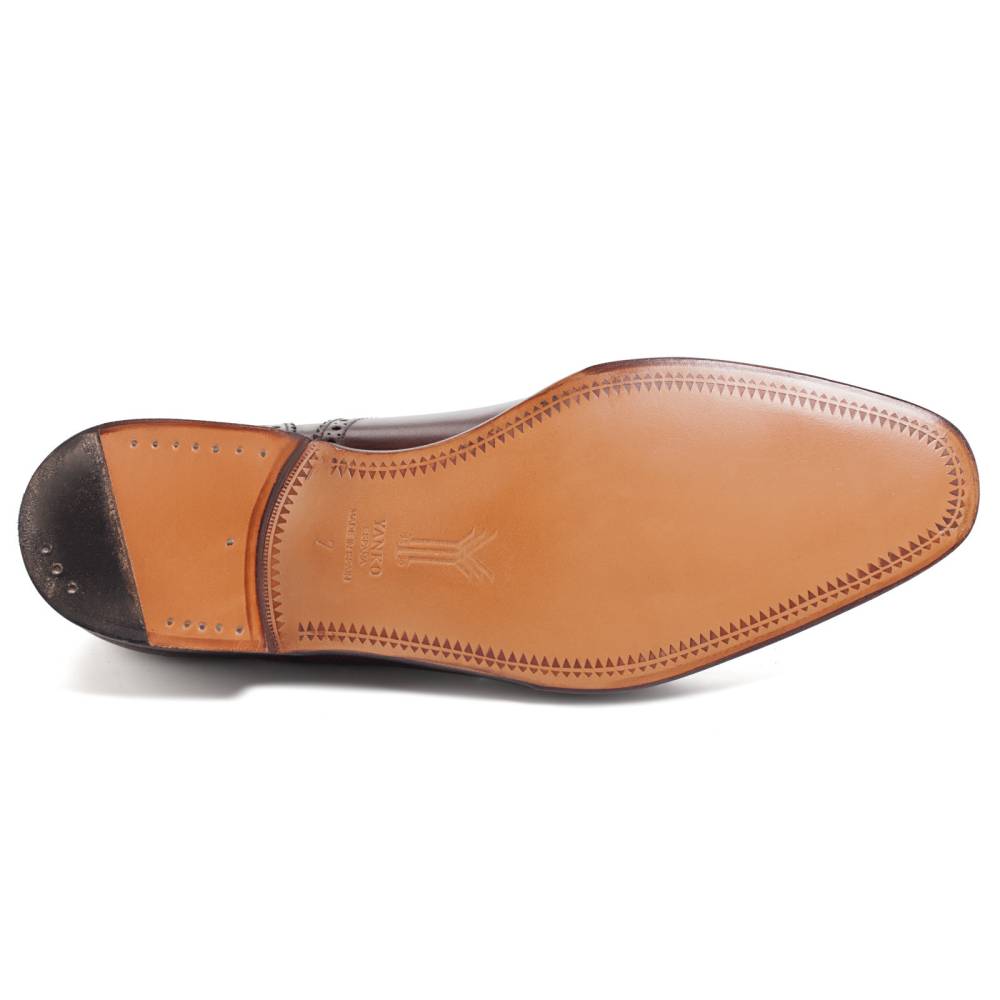 Мужские тёмно-коричневые туфли оксфорды Yanko на кожаной подошве. Верх полностью выполнен из телячьей кожи. Внутренняя отделка из тонкой кожи горчичного оттенка. Конструкция Goodyear.