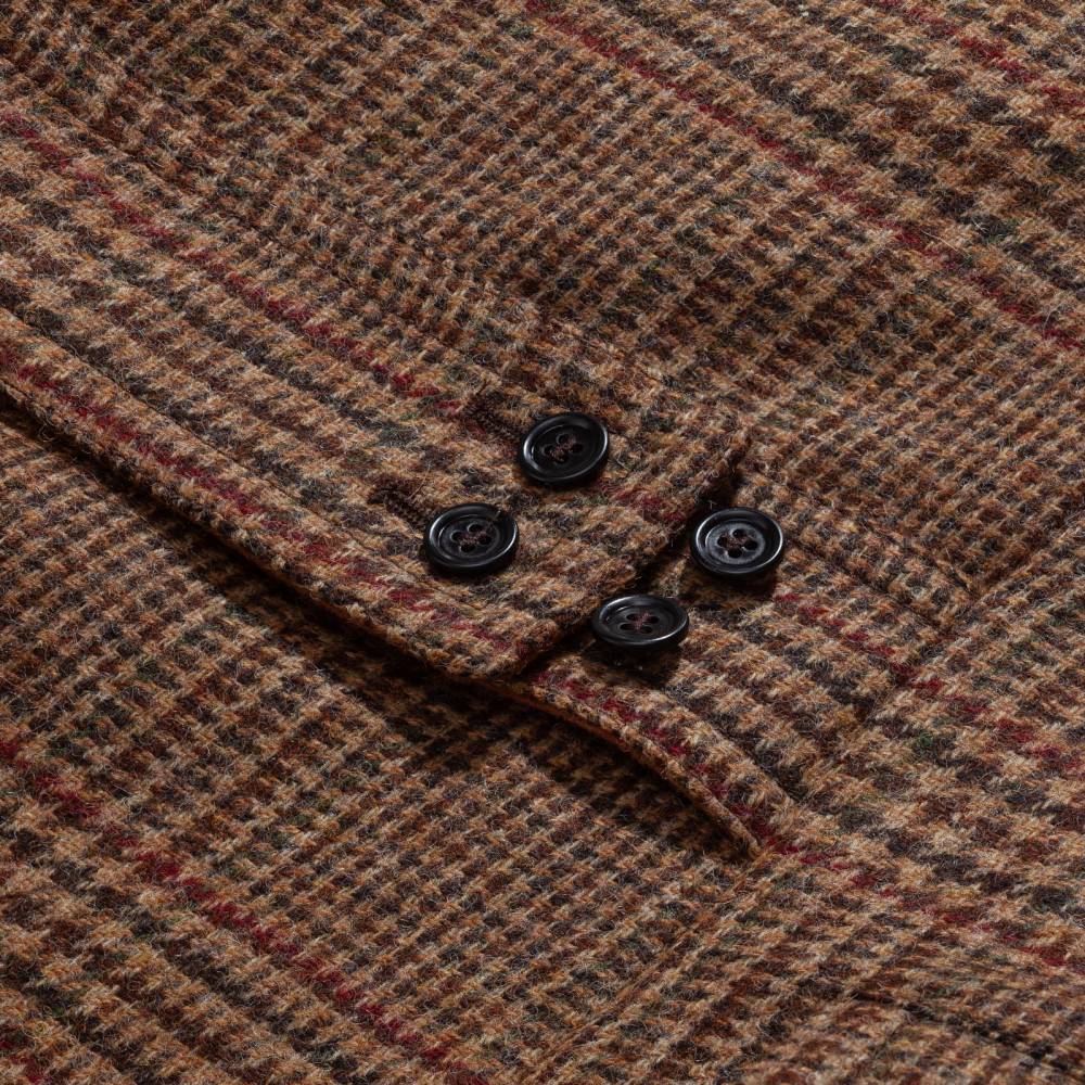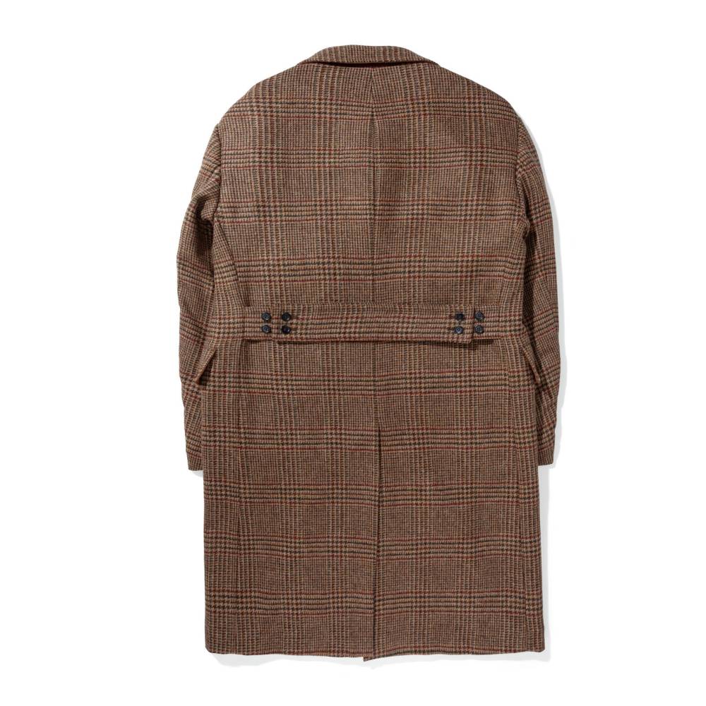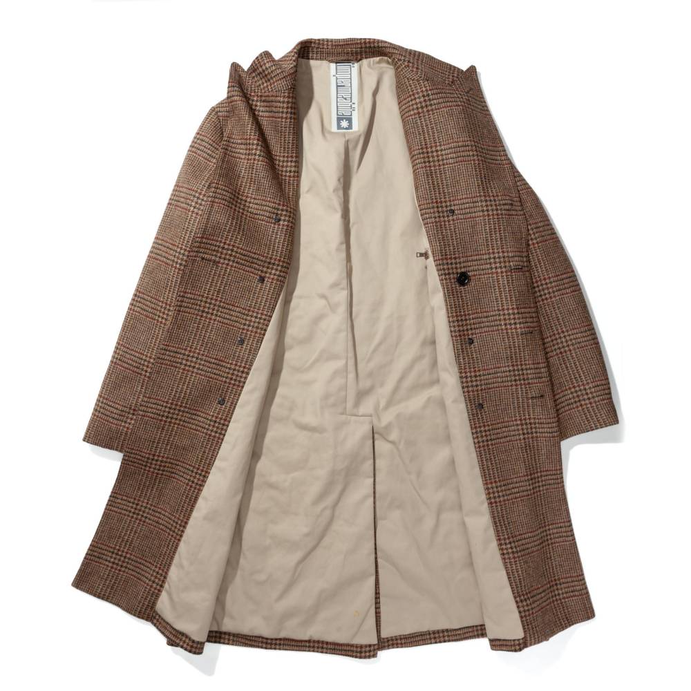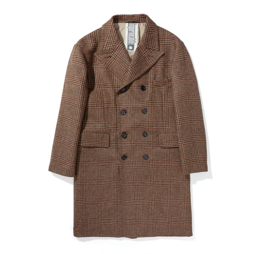 Мужское двубортное пальто приталенного силуэта от итальянского бренда L`impermeabile. Модель вдохновлена традиционными военными шинелями, используемыми британской армией в XX веке. Адаптированный вариант немного короче своих исторических собратьев и значительно легче, что делает его более практичным для города. Пальто выполнено из плотной, непереработанной Шетландской шерсти с классическим рисунком — клетка Принц Уэльский (Prince of Wales). Подкладка выполнена из хлопка и полиэстера саржевого плетения. С внешней стороны два вместительных накладных кармана с клапанами по бокам и один нагрудный карман. Внутри расположены еще два кармана. Сзади талию подчеркивает функциональный полупояс на пуговицах, который можно регулировать. Благодаря шлице сзади пальто не стесняет движений.