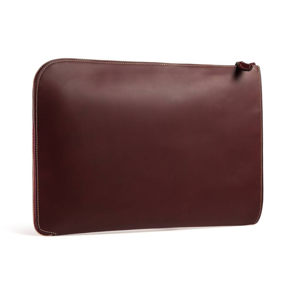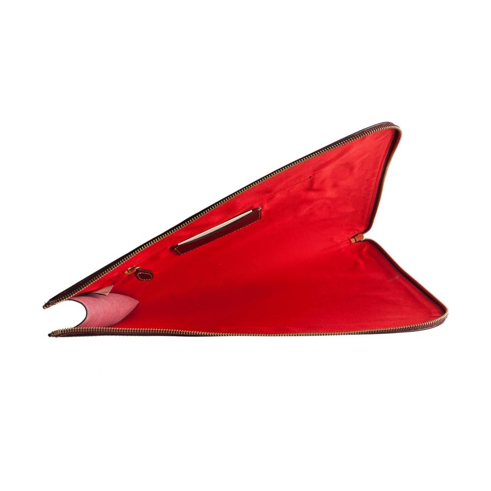 Элегантная и лаконичная кожаная папка для документов, в которую без труда поместится и ноутбук. Внутри имеются два кармана, один из которых застегивается на молнию. Такая папка станет незаменимым спутником делового человека, которому необходимо всегда держать под рукой важные документы. Подкладка выполнена из алого текстиля, а фурнитура — из латуни. В производстве используется кожа растительного дубления — приятная на ощупь, с мягким матовым блеском, гладкая и упругая. Такая кожа ценится за долговечность, а также за благородный винтажный вид, который приобретается с течением времени.