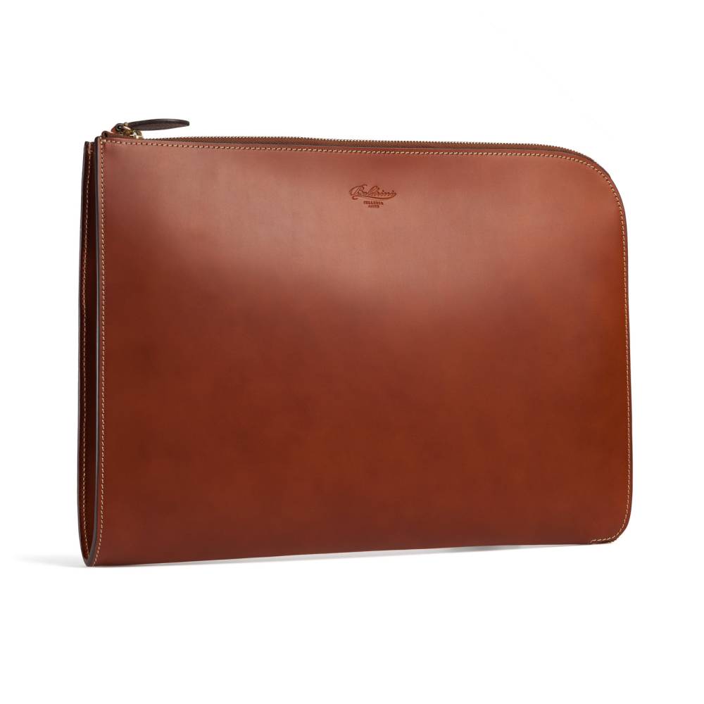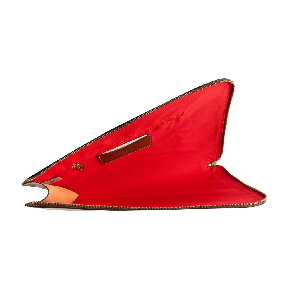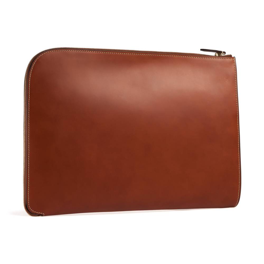 Элегантная и лаконичная кожаная папка для документов, в которую без труда поместится и ноутбук. Внутри имеются два кармана, один из которых застегивается на молнию. Такая папка станет незаменимым спутником делового человека, которому необходимо всегда держать под рукой важные документы. Подкладка выполнена из алого текстиля, а фурнитура — из латуни. В производстве используется кожа растительного дубления — приятная на ощупь, с мягким матовым блеском, гладкая и упругая. Такая кожа ценится за долговечность, а также за благородный винтажный вид, который приобретается с течением времени.