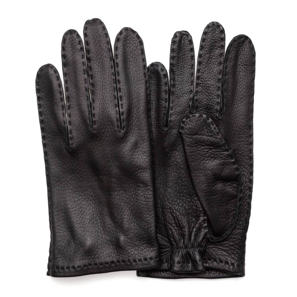 Тонкие мужские перчатки созданы по специальному заказу бутика Checkroom в Венгрии. Модель выполнена из мягкой, приятной на ощупь кожи оленя чёрного цвета. Благодаря укороченному фасону, перчатки не задевают рукава куртки или пиджака. Так как модель не имеет подкладки, она лучше всего подходит для ранней осени и весны, когда температура не ниже нуля.