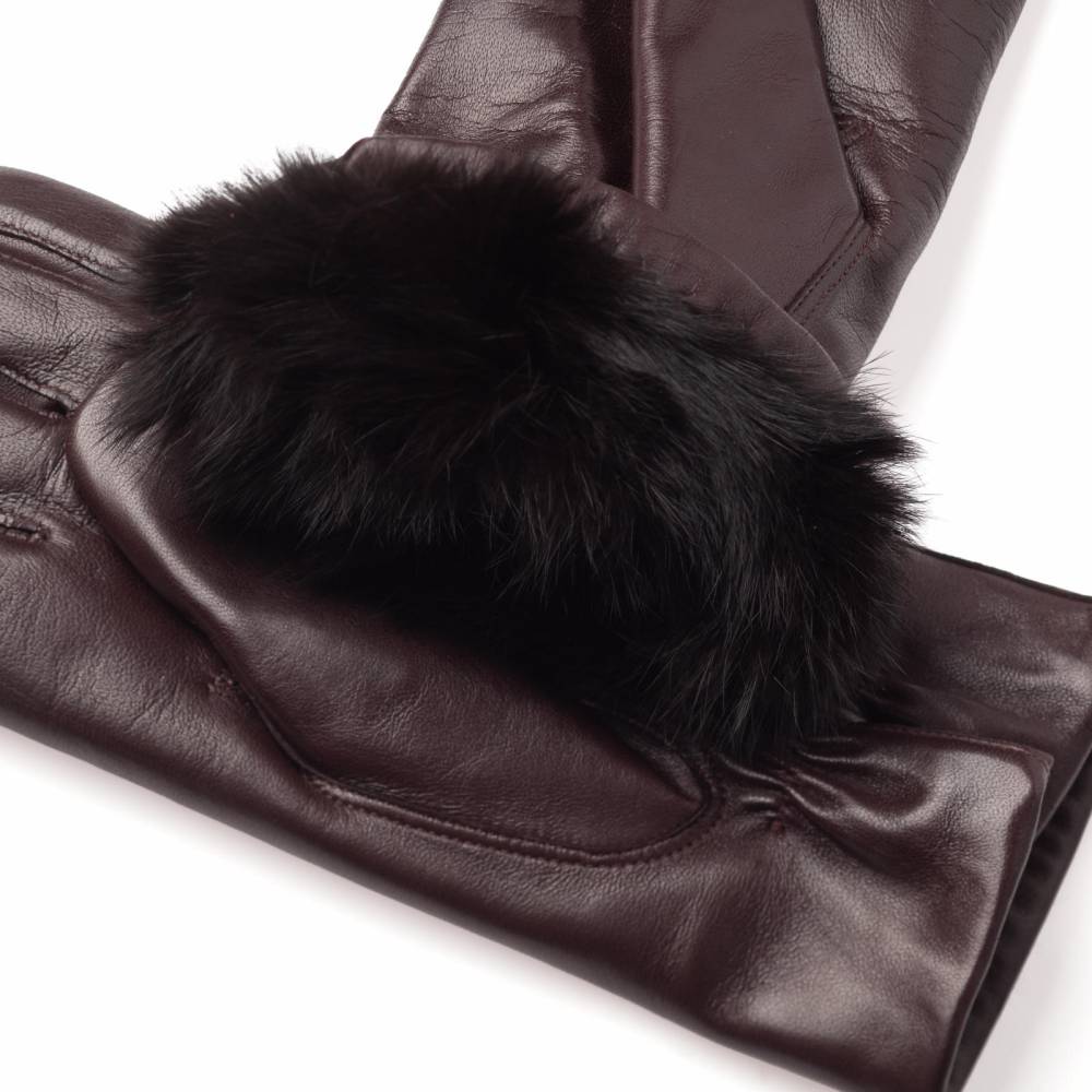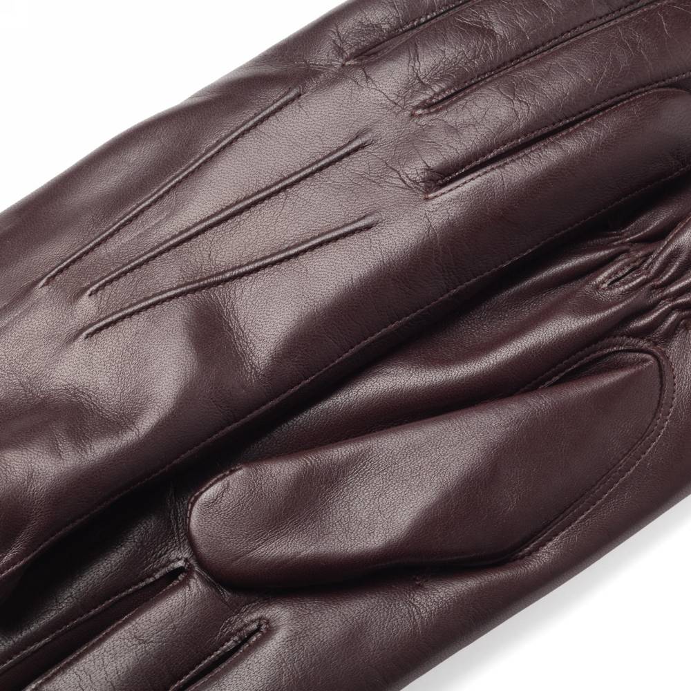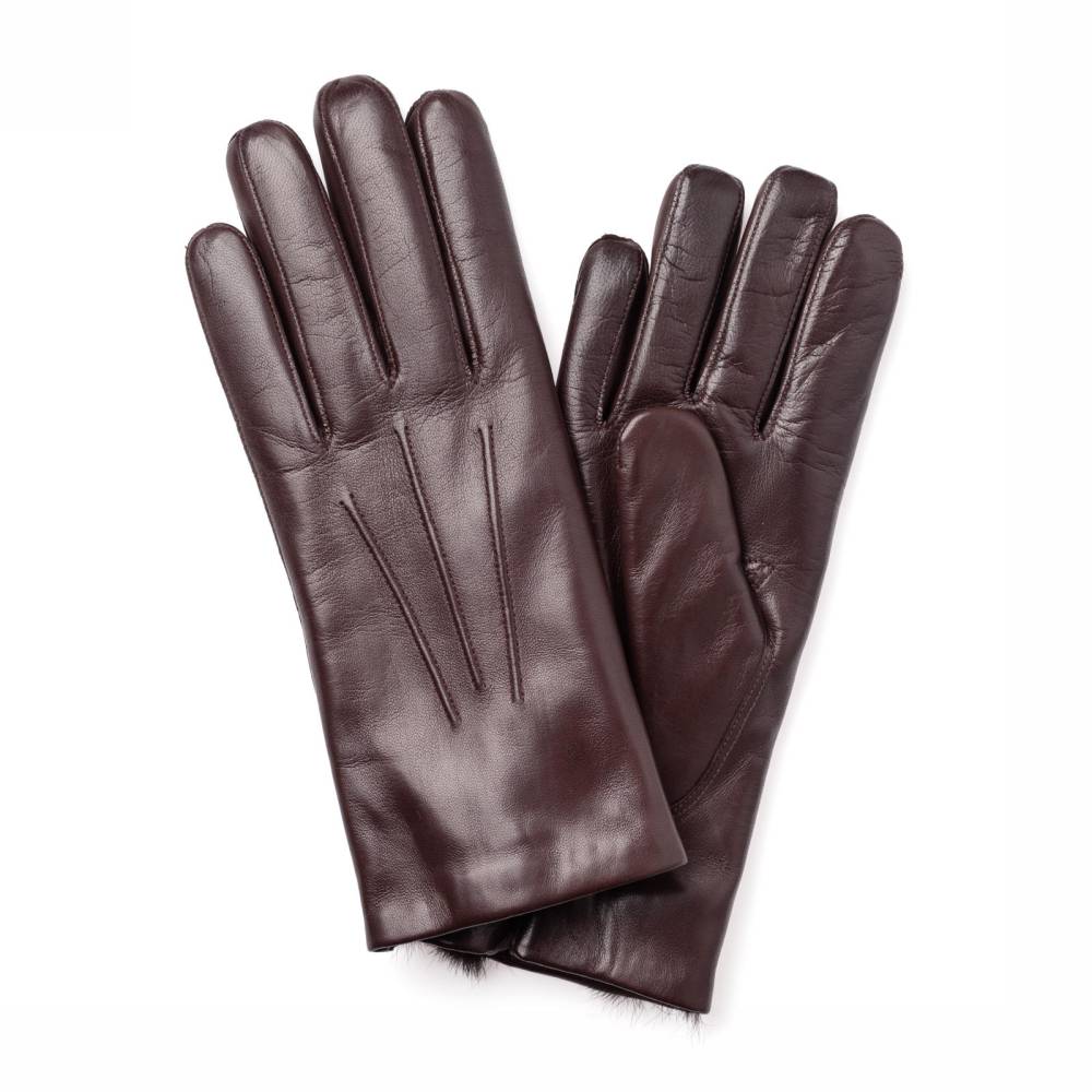 Лаконичные и элегантные мужские перчатки благородного тёмно-коричневого цвета. Модель сшита из высококачественной кожи ягнёнка с лёгким ненавязчивым блеском. Благодаря выдающейся мягкости и эластичности, кожа ягнёнка справедливо считается одним из лучших материалов для производства перчаток. Подкладка выполнена из мягкого и тёплого меха кролика, что позволяет носить их даже холодной зимой. Перчатки выглядят достаточно строго и подойдут под сдержанный классический гардероб в синих и коричневых тонах.