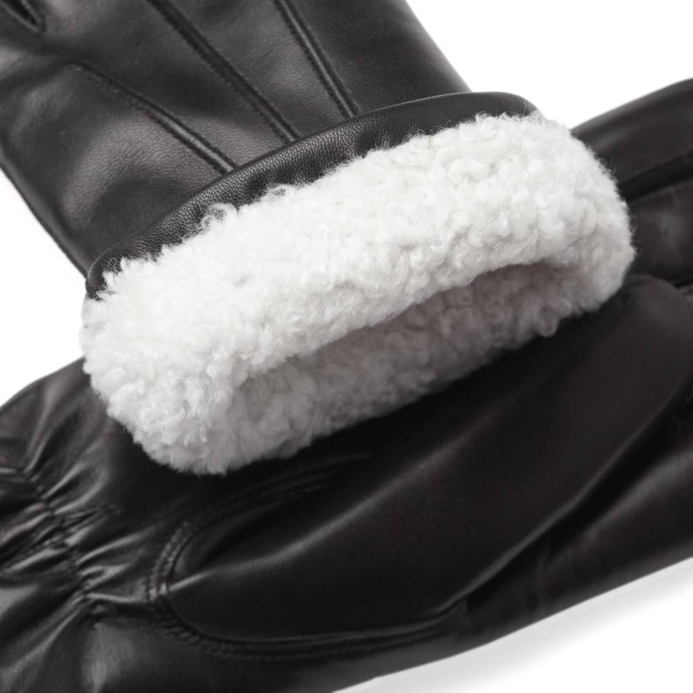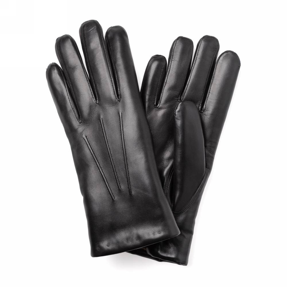 Лаконичные и строгие мужские перчатки чёрного цвета. Модель сшита из высококачественной кожи ягнёнка с лёгким ненавязчивым блеском. Благодаря выдающейся мягкости и эластичности, кожа ягнёнка справедливо считается одним из лучших материалов для производства перчаток. Подкладка выполнена из 100% овчины, благодаря чему их можно носить даже холодной зимой. Перчатки выглядят достаточно сдержанно и элегантно и хорошо впишутся в деловой классический гардероб.