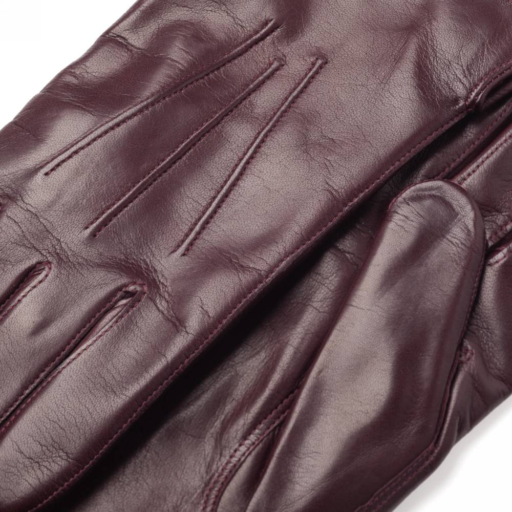 Лаконичные и элегантные мужские перчатки благородного тёмно-бордового цвета. Модель сшита из высококачественной кожи ягнёнка с лёгким ненавязчивым блеском. Благодаря выдающейся мягкости и эластичности, кожа ягнёнка справедливо считается одним из лучших материалов для производства перчаток. Подкладка выполнена из 100% шерсти. Перчатки выглядят достаточно строго и подойдут под сдержанный классический гардероб в синих и коричневых тонах. Эти перчатки можно носить осенью и зимой при температуре до – 5 °С.