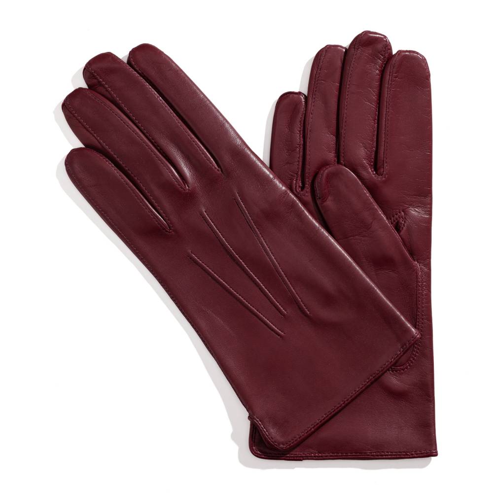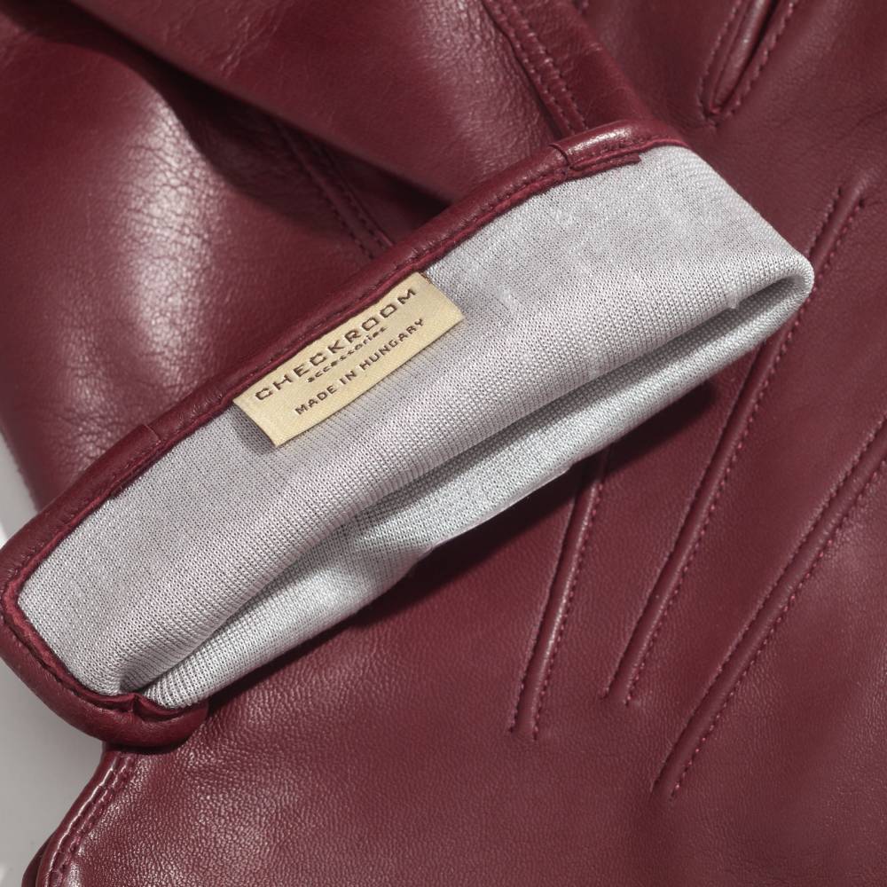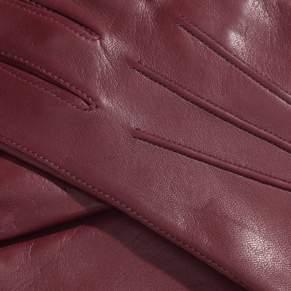 Элегантные классические мужские перчатки насыщенного винного оттенка. Модель сшита из высококачественной кожи ягнёнка с характерным лёгким блеском. Благодаря выдающейся мягкости и эластичности, кожа ягнёнка справедливо считается одним из лучших материалов для производства перчаток. Подкладка выполнена из 100% шёлка. Перчатки выглядят строго и хорошо сочетаются со сдержанным классическим гардеробом в синих, серых и коричневых тонах. Такие перчатки можно носить осенью и зимой при температуре до –5 °С.