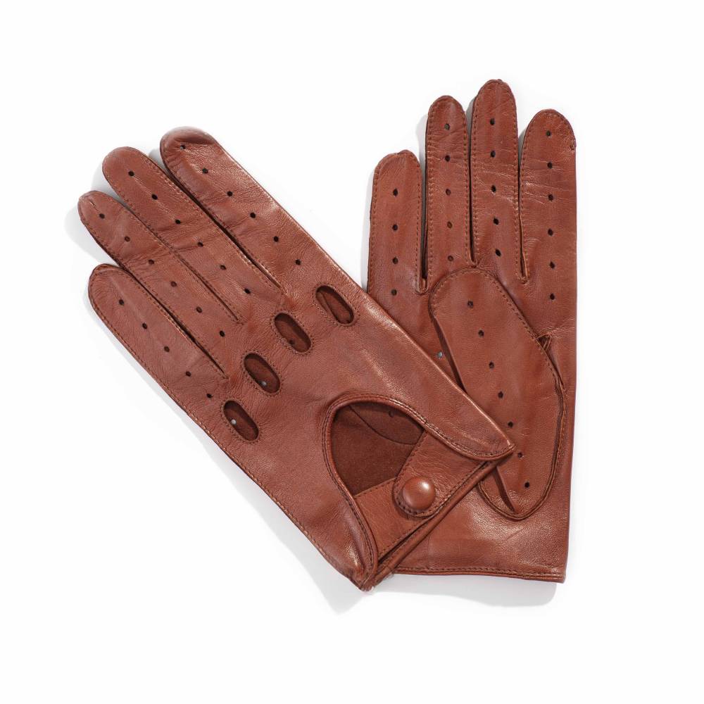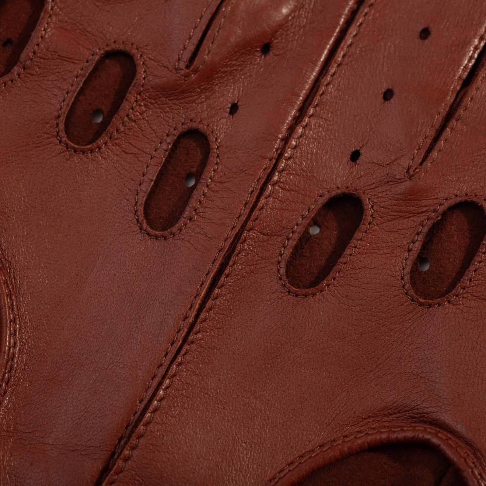 Эффектные коричневые мужские перчатки для вождения автомобиля сшиты из качественной кожи ягнёнка. Благодаря выдающейся мягкости и эластичности, этот материал по достоинству считается одним из лучших видов кожи для производства перчаток. Ремешок на кнопке позволяет легко снимать и надевать перчатки, а также фиксировать их в области запястья. Поскольку модель без подкладки, она подойдёт для тёплой погоды. Помимо использования в автомобиле, её можно носить и в повседневной жизни как дополнение к стильному образу. Такие перчатки хорошо сочетаются с не очень строгой классической одеждой.