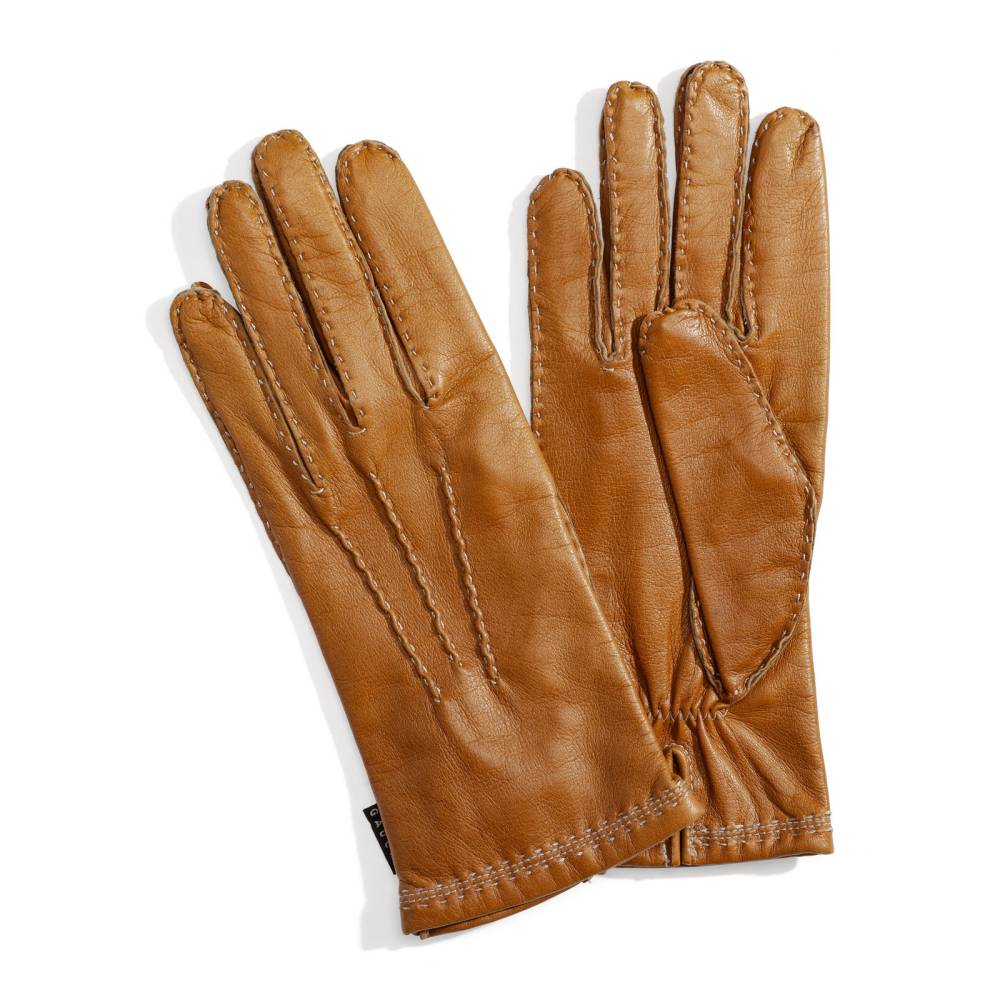 Элегантные женские перчатки от бренда Gaucho станут изысканным акцентом в вашем гардеробе для межсезонья. Модель выполнена из высококачественной кожи ягненка благородного горчичного оттенка, которая отличается исключительной мягкостью, эластичностью и деликатным природным блеском. Особую ценность изделию придают наружные швы, прошитые вручную контрастной нитью. Эта трудоемкая ручная работа не только подчеркивает статус аксессуара, но и обеспечивает комфортную посадку, не ограничивающую движения пальцев. Внутри предусмотрена легкая подкладка из шелковистой вискозы, которая приятно прилегает к коже и обеспечивает оптимальный микроклимат в теплые весенние или осенние дни.