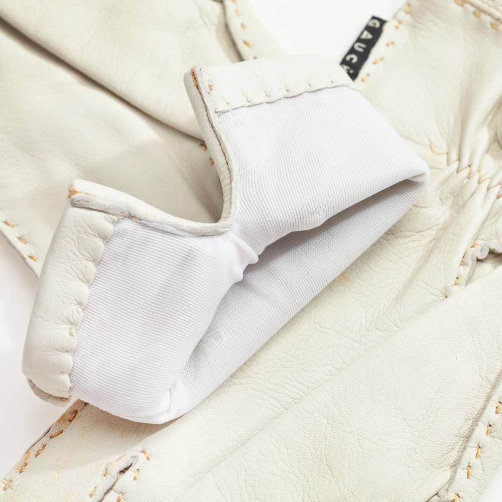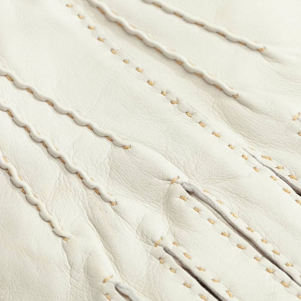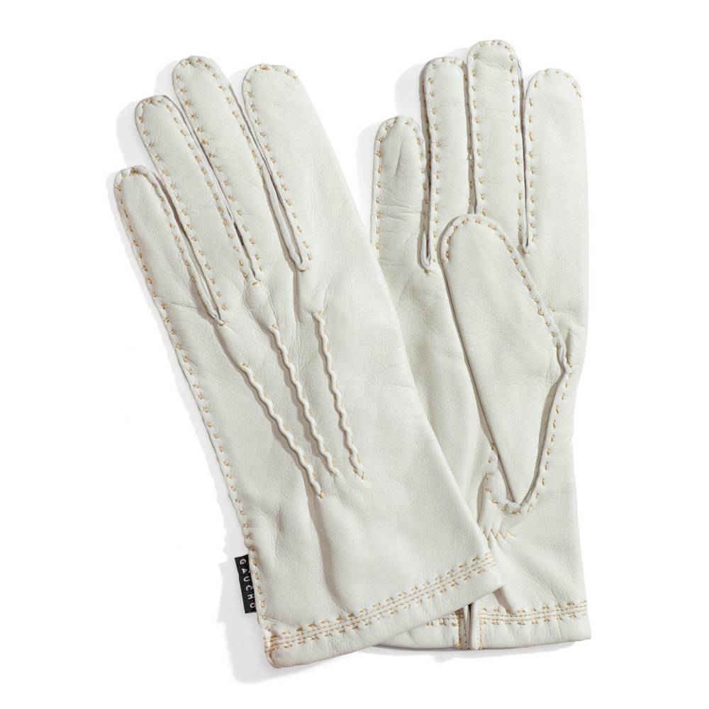 Элегантные женские перчатки от бренда Gaucho станут изысканным акцентом в вашем гардеробе для межсезонья. Модель выполнена из высококачественной кожи ягненка благородного белого оттенка, которая отличается исключительной мягкостью, эластичностью и деликатным природным блеском. Особую ценность изделию придают наружные швы, прошитые вручную контрастной нитью. Эта трудоемкая ручная работа не только подчеркивает статус аксессуара, но и обеспечивает комфортную посадку, не ограничивающую движения пальцев. Внутри предусмотрена легкая подкладка из шелковистой вискозы, которая приятно прилегает к коже и обеспечивает оптимальный микроклимат в теплые весенние или осенние дни.