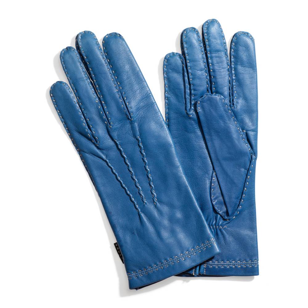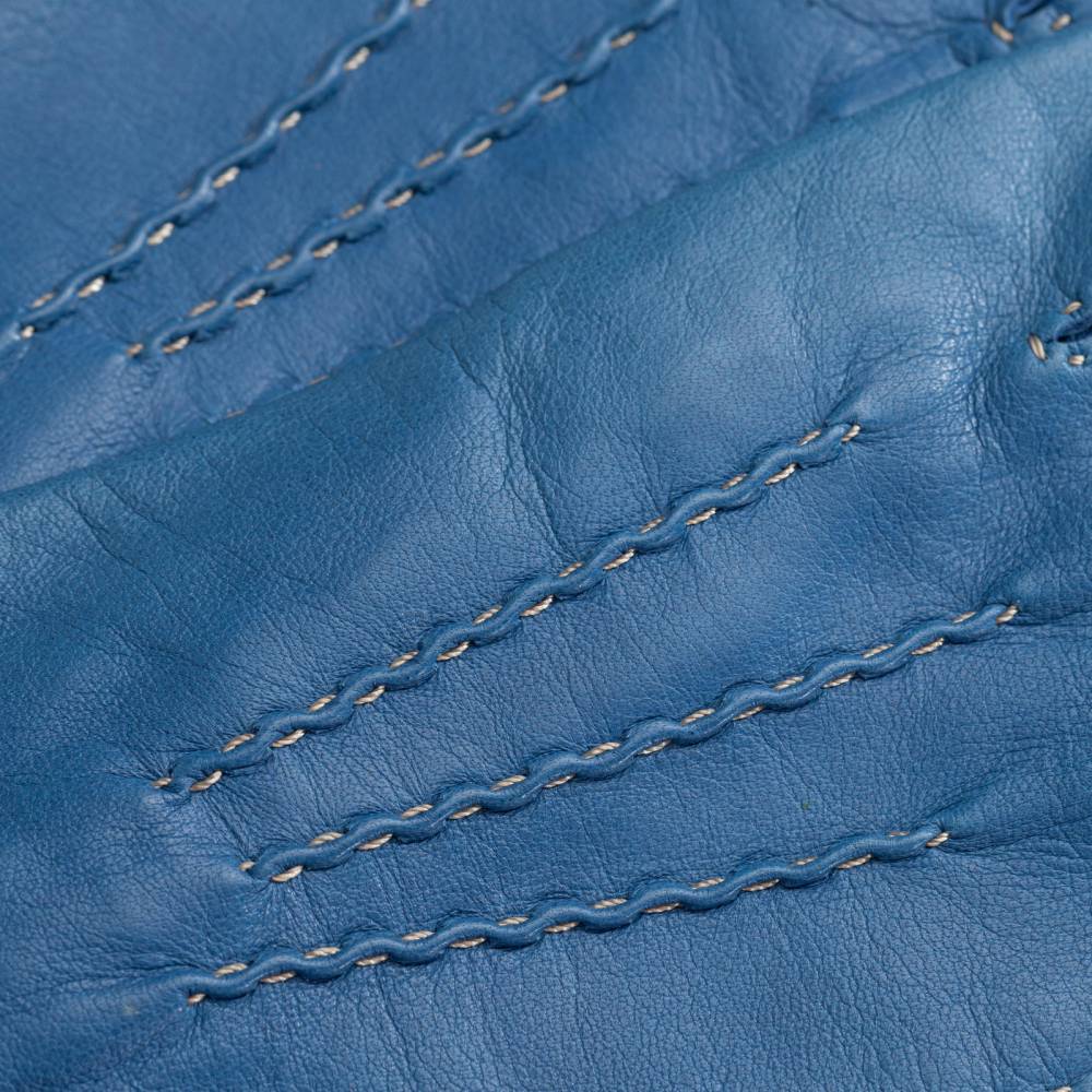 Элегантные женские перчатки от бренда Gaucho станут изысканным акцентом в вашем гардеробе для межсезонья. Модель выполнена из высококачественной кожи ягненка благородного синего оттенка, которая отличается исключительной мягкостью, эластичностью и деликатным природным блеском. Особую ценность изделию придают наружные швы, прошитые вручную контрастной нитью. Эта трудоемкая ручная работа не только подчеркивает статус аксессуара, но и обеспечивает комфортную посадку, не ограничивающую движения пальцев. Внутри предусмотрена легкая подкладка из шелковистой вискозы, которая приятно прилегает к коже и обеспечивает оптимальный микроклимат в теплые весенние или осенние дни.