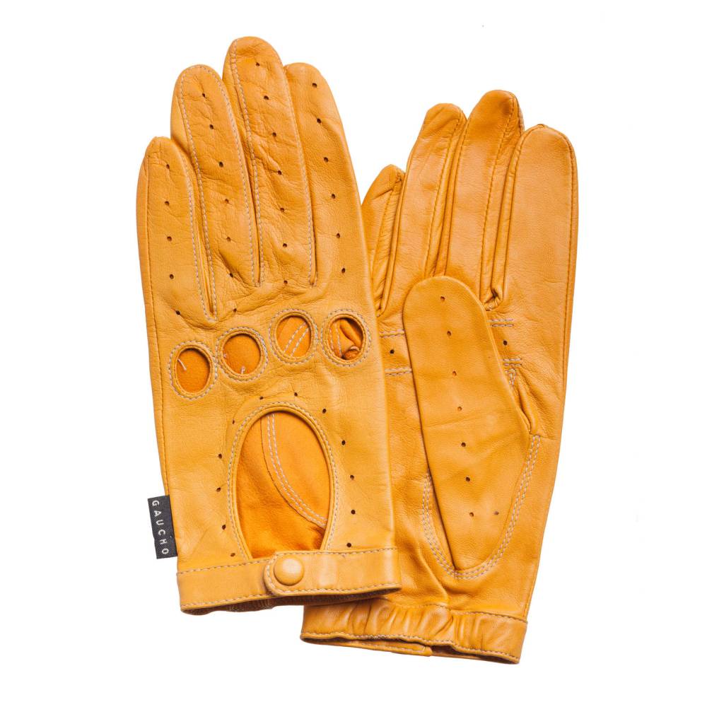 Эффектные женские перчатки GAUCHO для вождения автомобиля выполнены из качественной кожи ягнёнка светло-коричневого цвета. Мягкая кожа с перфорацией обеспечивает рукам комфорт и прочное сцепление с рулём. Ремешок на кнопке позволяет легко снимать и надевать перчатки. Подходят для тёплых весенних и осенних дней.