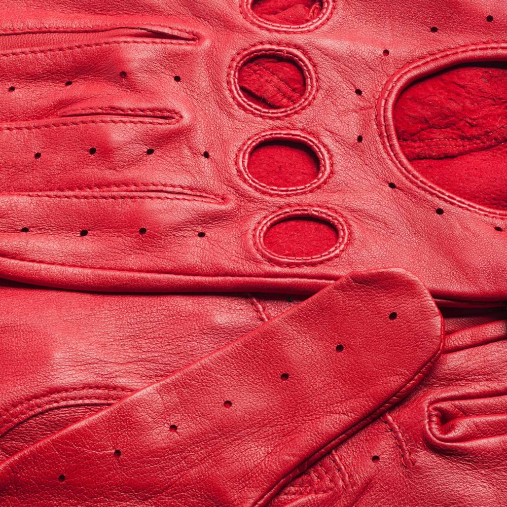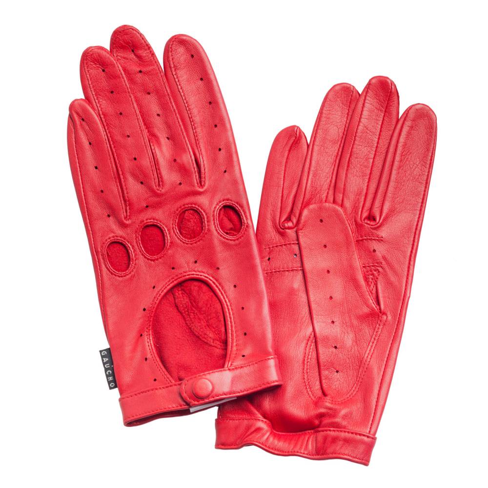 Эффектные женские перчатки GAUCHO для вождения автомобиля выполнены из качественной кожи ягнёнка красного цвета. Мягкая кожа с перфорацией обеспечивает рукам комфорт и прочное сцепление с рулём. Ремешок на кнопке позволяет легко снимать и надевать перчатки. Подходят для тёплых весенних и осенних дней.