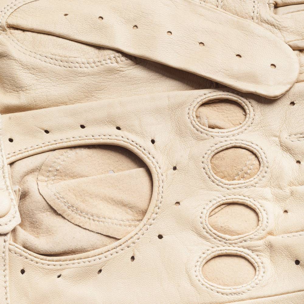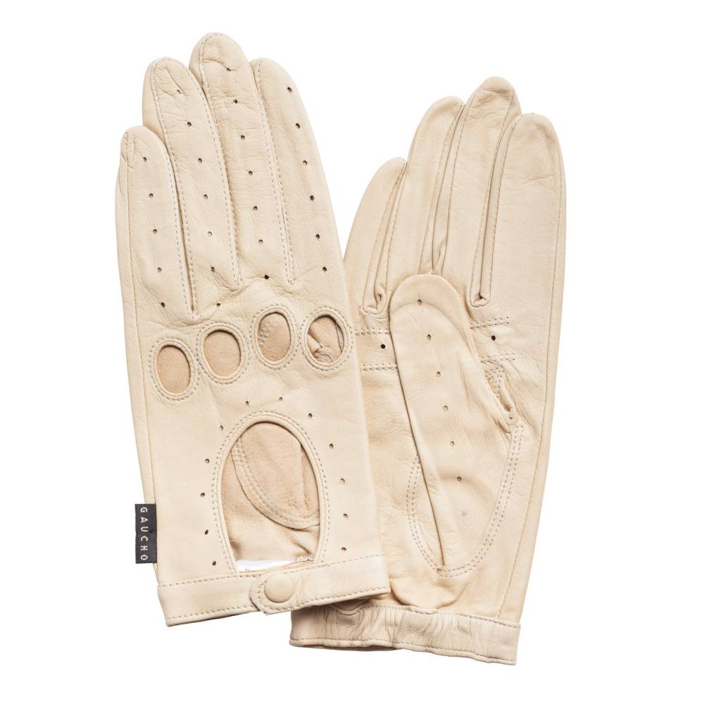 Эффектные женские перчатки GAUCHO для вождения автомобиля выполнены из качественной кожи ягнёнка светло-бежевого цвета. Мягкая кожа с перфорацией обеспечивает рукам комфорт и прочное сцепление с рулём. Ремешок на кнопке позволяет легко снимать и надевать перчатки. Подходят для тёплых весенних и осенних дней.
