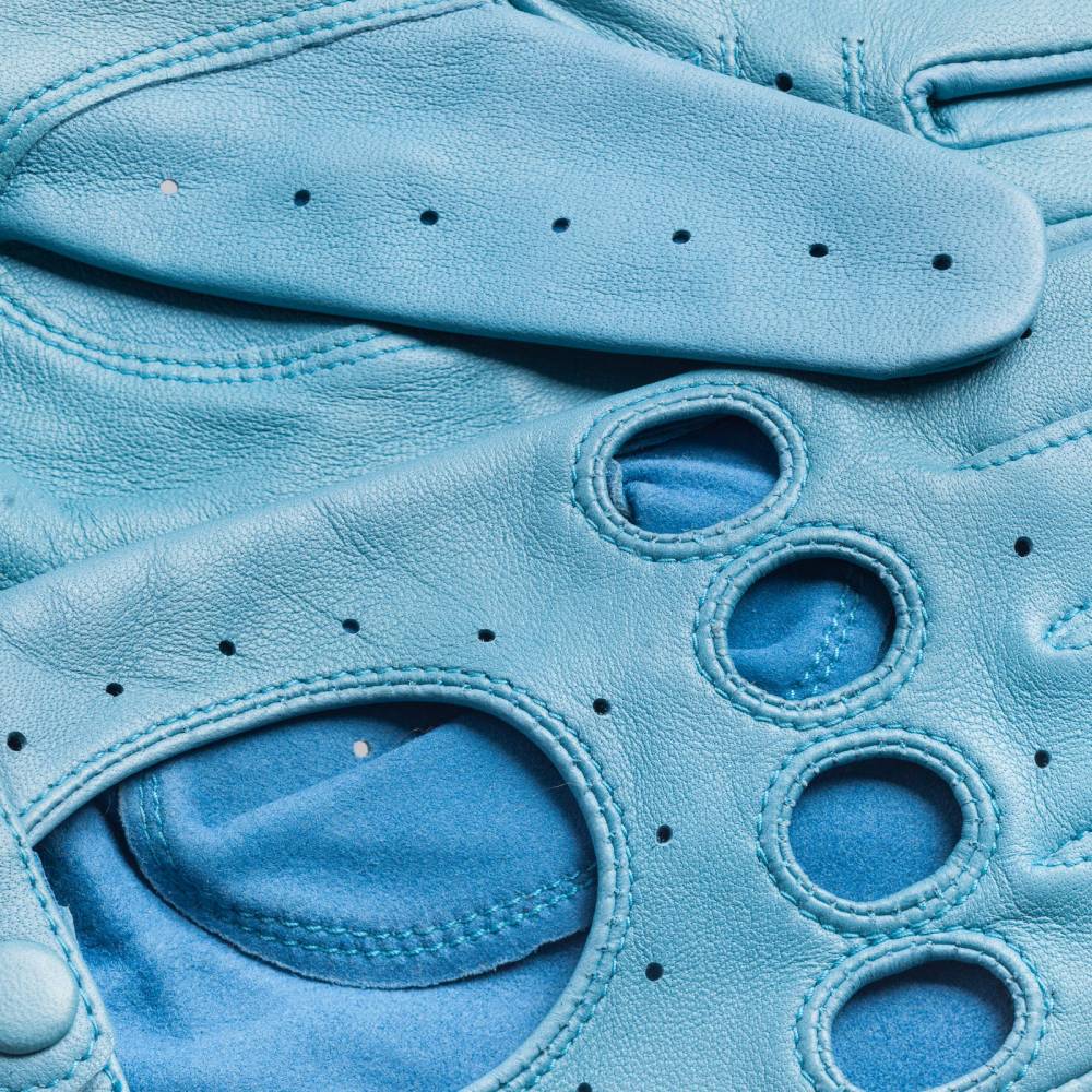 Эффектные женские перчатки GAUCHO для вождения автомобиля выполнены из качественной кожи ягнёнка голубого цвета. Мягкая кожа с перфорацией обеспечивает рукам комфорт и прочное сцепление с рулём. Ремешок на кнопке позволяет легко снимать и надевать перчатки. Подходят для тёплых весенних и осенних дней.