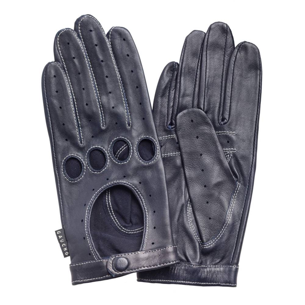 Эффектные женские перчатки GAUCHO для вождения автомобиля выполнены из качественной кожи ягнёнка тёмно-синего цвета. Мягкая кожа с перфорацией обеспечивает рукам комфорт и прочное сцепление с рулём. Ремешок на кнопке позволяет легко снимать и надевать перчатки. Подходят для тёплых весенних и осенних дней.