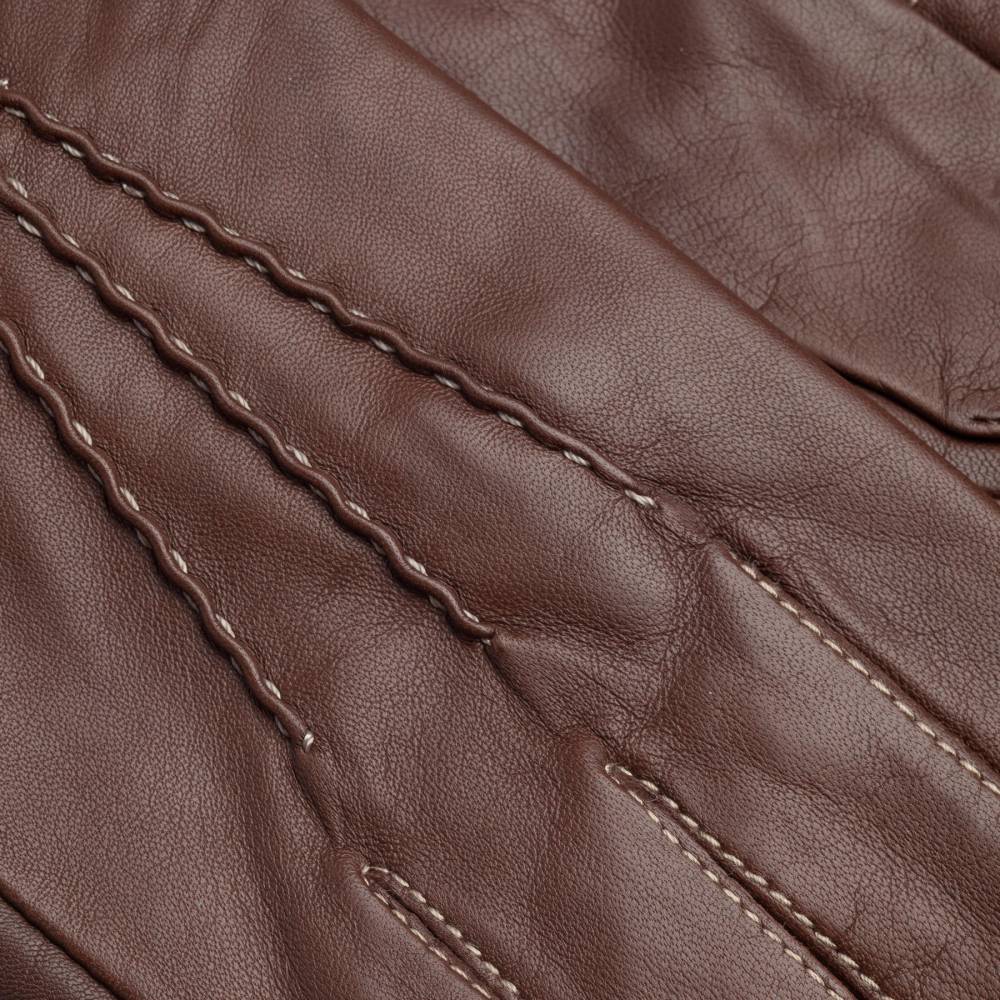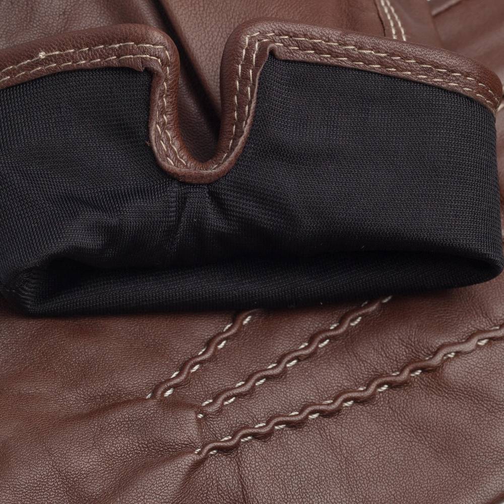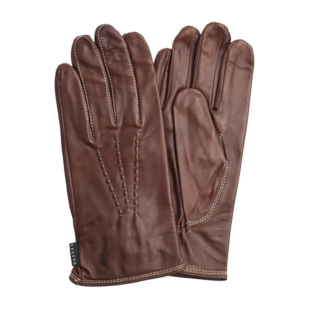 Элегантные и универсальные коричневые мужские перчатки GAUCHO из мягкой и эластичной кожи ягнёнка. Модель подходит для умеренно строгого демисезонного гардероба, поскольку подкладка выполнена из вискозы. С тыльной стороны ладони перчатки украшены тройной традиционной строчкой. В области запястья имеется эластичная сборка, которая позволяет легко надевать и снимать перчатки.