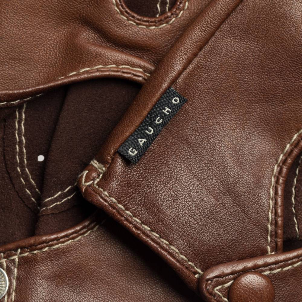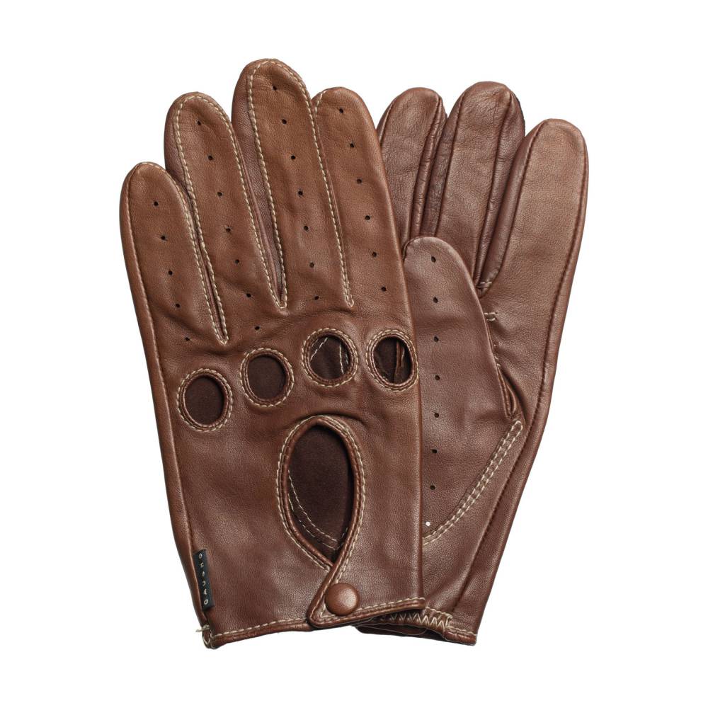 Эффектные мужские перчатки GAUCHO для вождения автомобиля выполнены из качественной кожи ягнёнка коричневого цвета. Мягкая кожа с перфорацией обеспечивает рукам комфорт и прочное сцепление с рулём. Ремешок на кнопке позволяет легко снимать и надевать перчатки. Подходят для тёплых весенних и осенних дней.