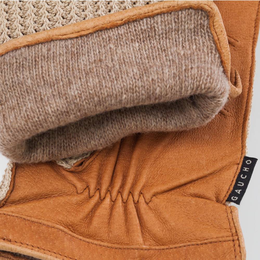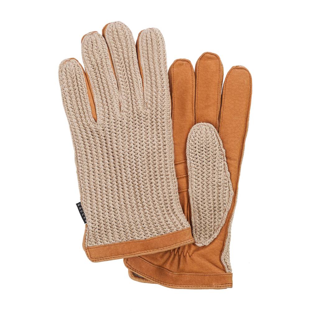 Эффектные мужские водительские перчатки GAUCHO выполнены из качественной свиной кожи светло-коричневого цвета. Оригинальная вязаная верхняя часть делает перчатки более эластичными и позволяет добиться более плотной посадки. Подкладка выполнена из тёплой шерсти, так что перчатки подходят и для прохладных осенних дней.