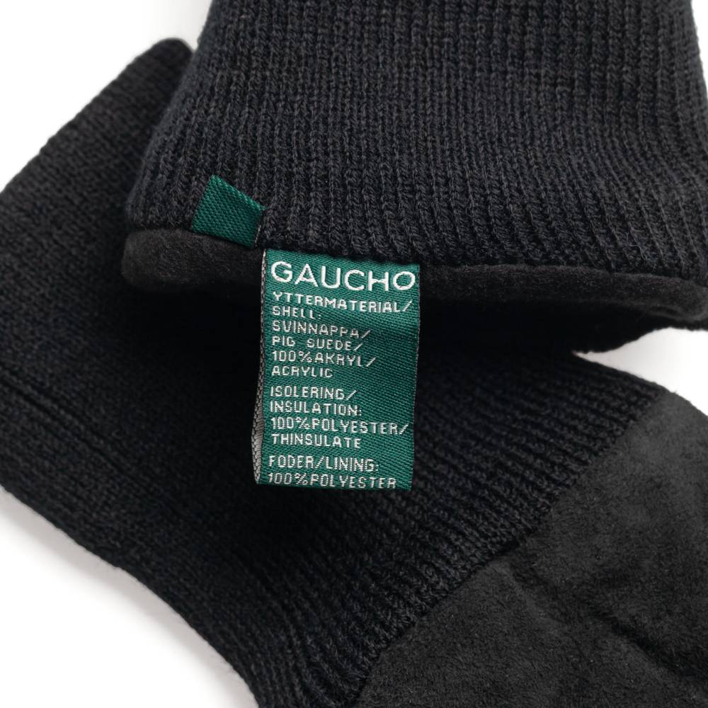 Стильные мужские перчатки GAUCHO чёрного цвета. Модель сочетает в себе разные фактуры: детали из мягкой и прочной замши соединены вязаными вставками, которые обеспечивают более комфортную посадку. Длинные вязаные манжеты можно носить подвернутыми — или расправить их, чтобы дополнительно согреть запястья во время долгих прогулок на свежем воздухе. Приятная на ощупь флисовая подкладка дополнена лёгким и тонким утеплителем Thinsulate™. Такой тип перчаток из сочитания двух материалов особенно популярен в Шведции и, можно сказать, является национальным и традиционным дизайном страны.