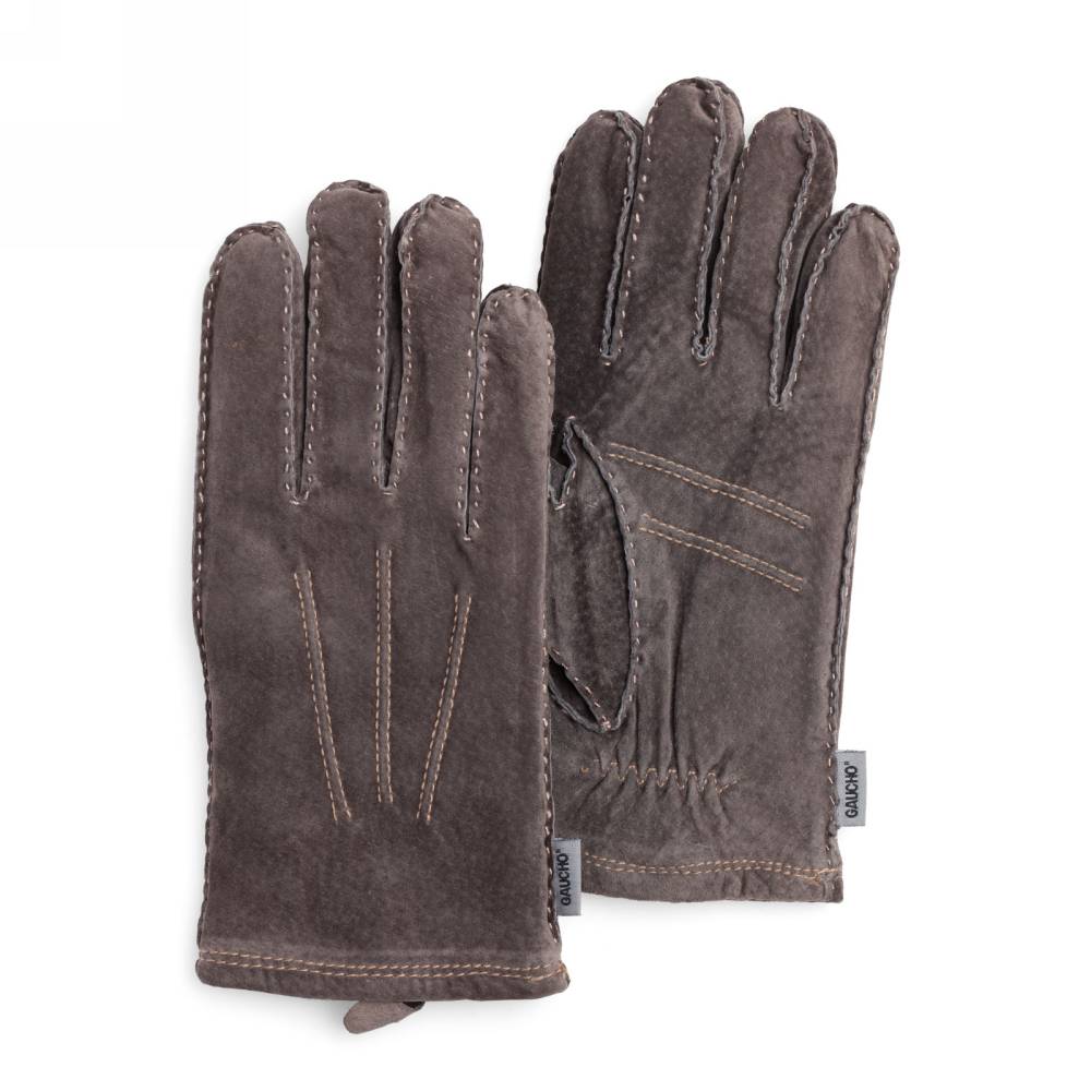 Классические мужские перчатки GAUCHO серого цвета с контрастными швами. С внешней сторны модель выполнена из мягкой бархатистой замши.Подкладка выполнена из удобного, теплого и приятного на ощупь флисового полиэстера. Область ладони защищена от трения двойной фактурной строчкой. Манжеты дополнены эластичной сборкой, которая позволяет быстро и легко надевать перчатки. Модель подойдёт для осенней и зимней погоды с температурой до –5°С.