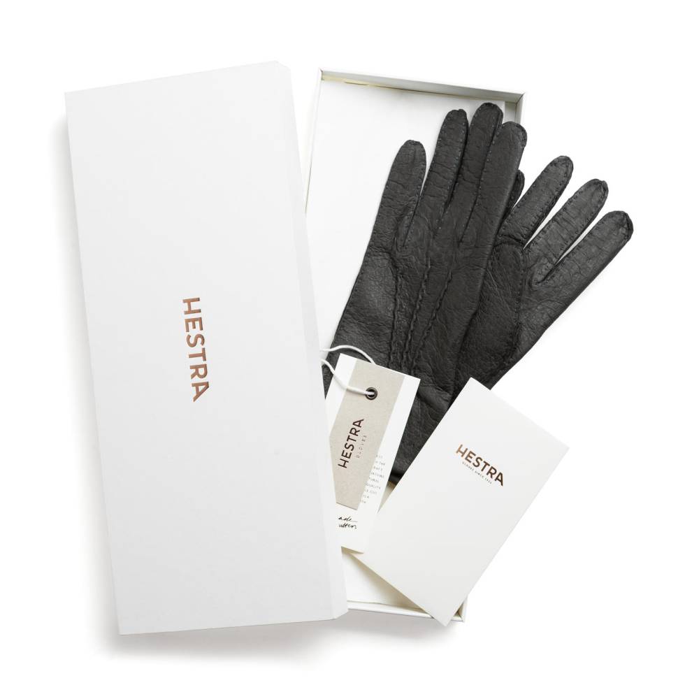 Тонкие элегантные женские перчатки шведского бренда Hestra серого цвета. Модель из коллекции Table Cut вручную изготовлена из одного отрезка кожи пекари – дикого кабана, обитающего в джунглях Амазонки. Редкая и эксклюзивная кожа пекари обладает прекрасными изоляционными свойствами и характерным рисунком. Она не требует особого ухода и со временем, наоборот, становится только мягче и эластичнее, приобретая благородную патину. Так как перчатки не имеют подкладки, они лучше всего подходят для ранней осени и весны, когда температура не ниже нуля.