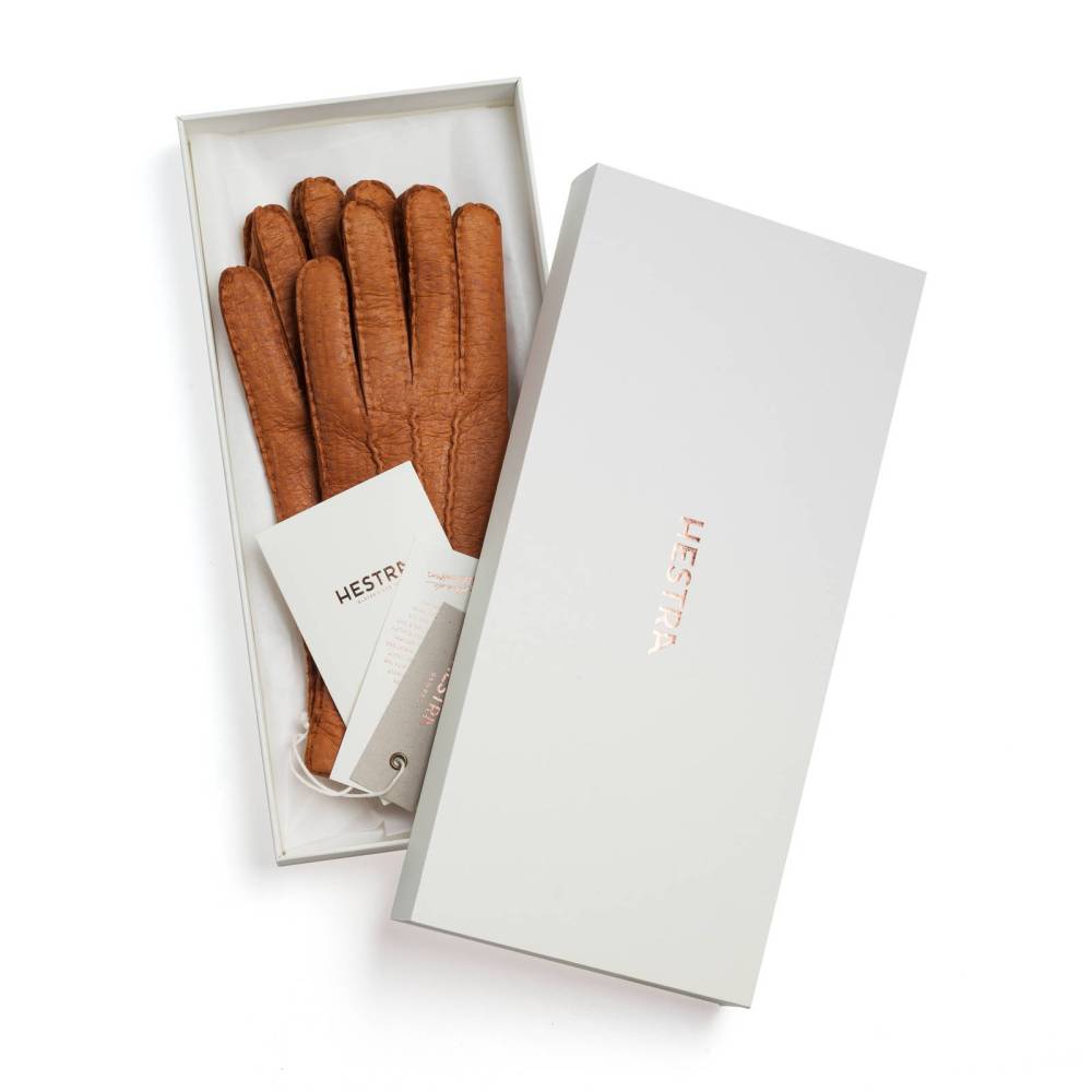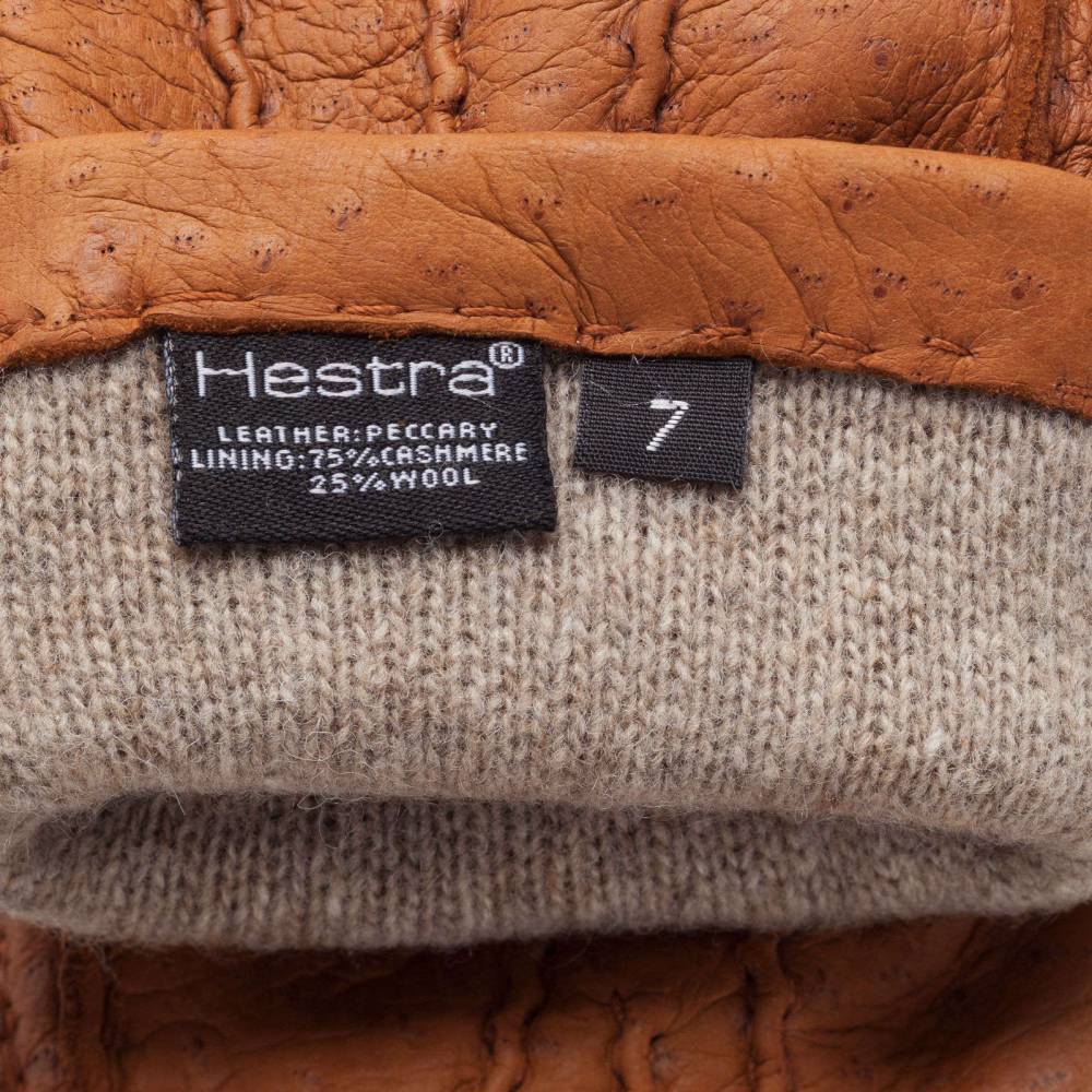 Классические женские перчатки Hestra лаконичного дизайна. Модель из коллекции Table Cut вручную изготовлена из одного отрезка кожи пекари – дикого кабана, обитающего в джунглях Амазонки. Редкая и эксклюзивная кожа пекари обладает прекрасными изоляционными свойствами и характерным рисунком. Она не требует особого ухода и со временем, наоборот, становится только мягче и эластичнее, приобретая благородную патину. Подкладка выполнена из шерсти и мягкого итальянского кашемира. Модель предназначена для осенней и зимней погоды с температурой до - 15 °С.