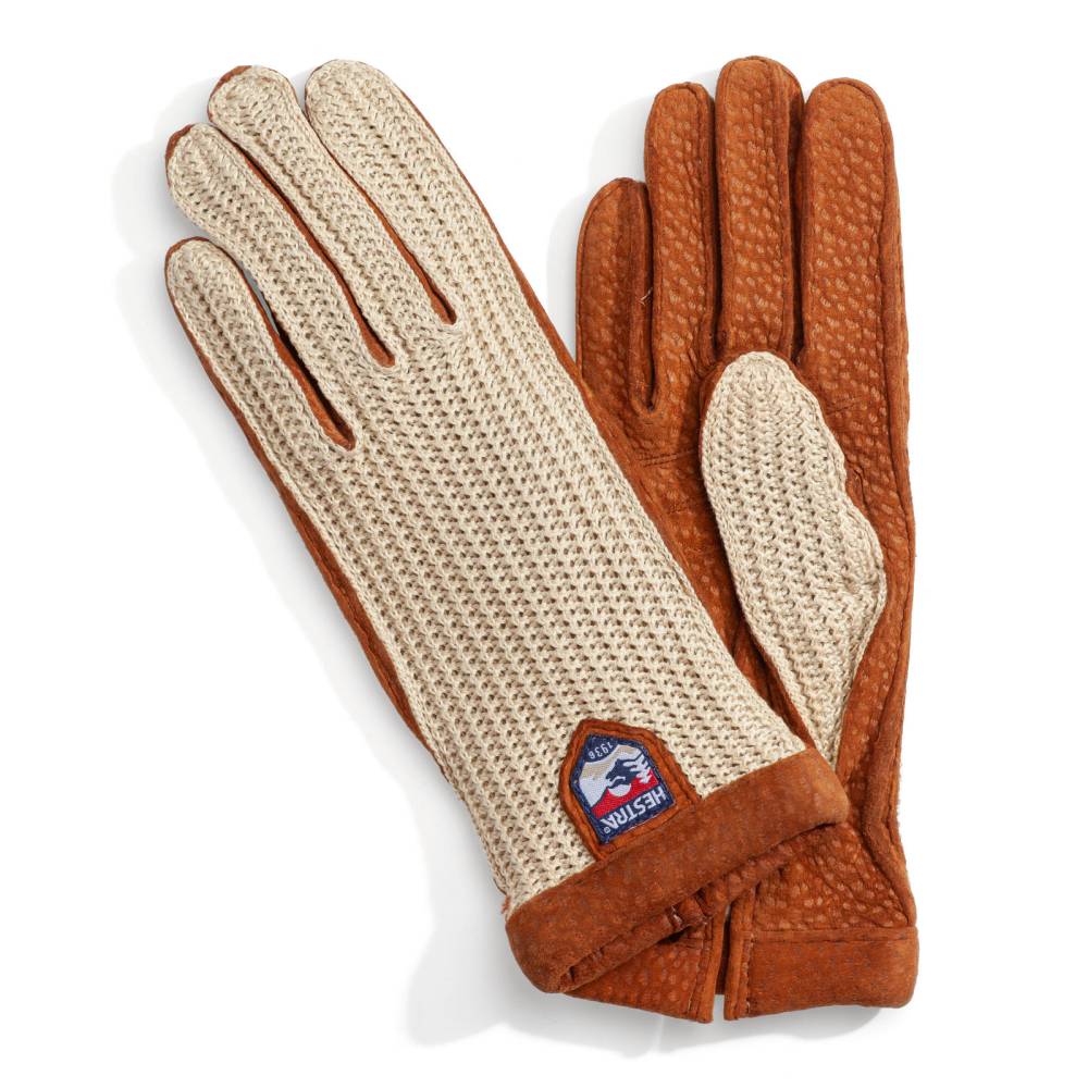 Элегантные женские перчатки от шведского бренда Hestra — это изысканное сочетание редких материалов, ручного мастерства и вневременного стиля. Ладонь выполнена из высококачественной кожи капибары благородного рыже-коричневого цвета. Этот материал ценится за невероятную мягкость и эластичность, позволяющую перчатке плавно повторять каждое движение руки. Тыльная сторона изготовлена из фактурного хлопка, связанного крючком (техника Crochet). Этот элемент придает образу благородный ретро-шарм и обеспечивает отличную терморегуляцию. Внутри предусмотрена тонкая трикотажная подкладка из смеси шерсти и кашемира. Она эффективно согревает руки в холодные дни, оставаясь при этом практически невесомой. Для максимального удобства модель дополнена аккуратной прорезью на запястье, которая значительно облегчает надевание и обеспечивает комфортную посадку. Завершающим штрихом служит лаконичный вышитый логотип бренда.