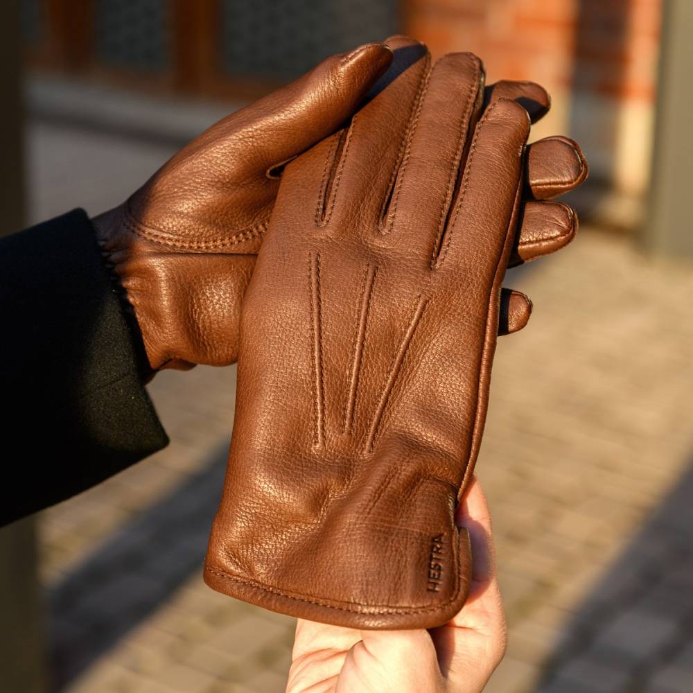 Классические женские перчатки шведского бренда Hestra коричневого цвета. Модель выполнена из мягкой, приятной на ощупь кожи оленя с великолепной зернистой текстурой. Подкладка из тёплой итальянской шерсти бежевого оттенка. Манжеты дополнены эластичной сборкой, которая позволяет быстро и легко надевать перчатки. Область ладони дополнительно укреплена двумя строчками. Модель подойдёт для осенней и зимней погоды с температурой до – 15 °С.